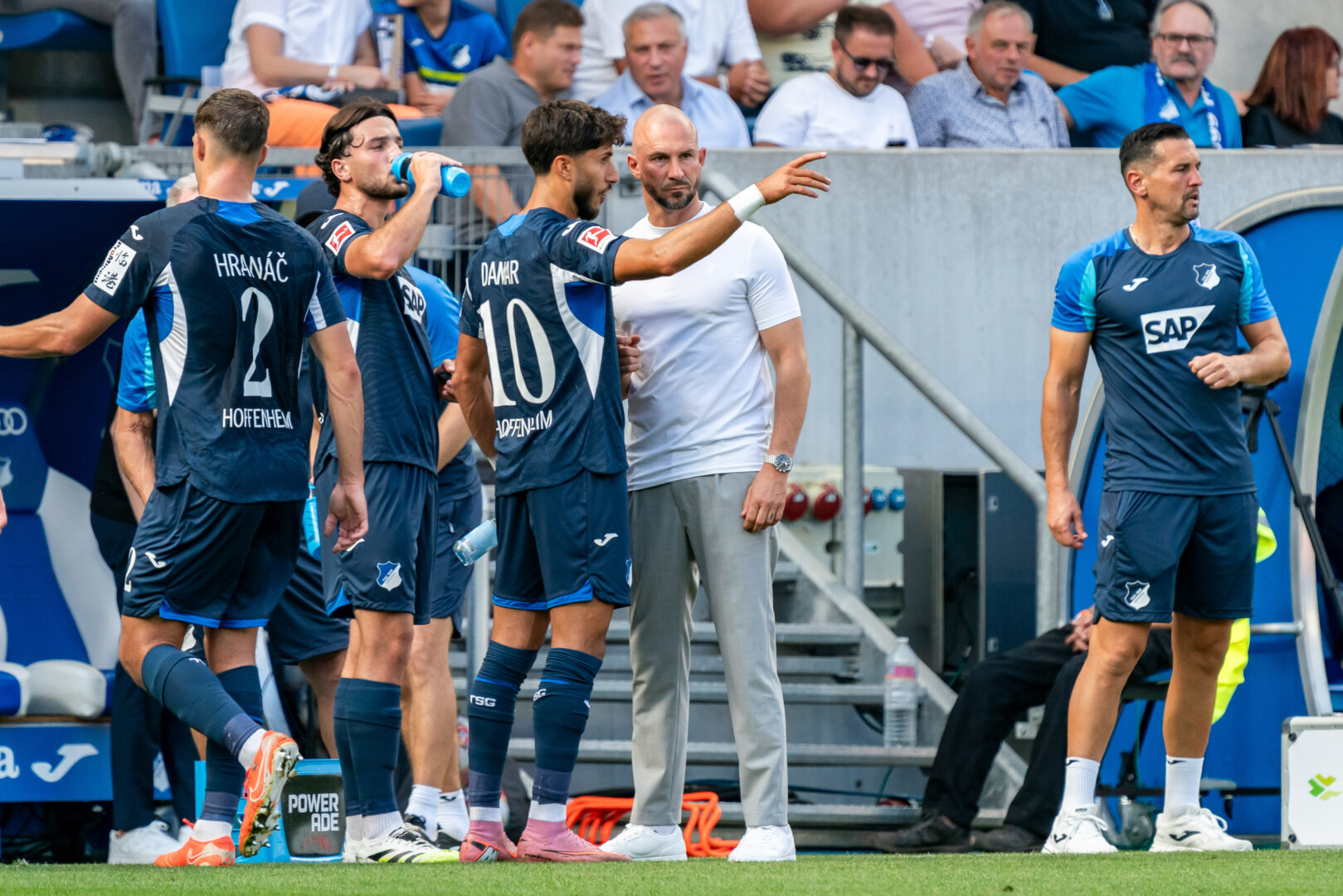 Das schwere Auftaktprogramm gegen drei Champions League-Teilnehmer an den ersten vier Spieltagen ist absolviert. Nach zwei Auswärtssiegen und zwei Heimniederlagen stehen für die TSG sechs Punkte zu Buche. Das Fazit von Trainer Ilzer ist durchweg positiv: „Mit den bisherigen Leistungen kann man durchaus zufrieden sein. Es waren sehr gute Momente dabei. Grundsätzlich kann und darf man mit Niederlagen nie zufrieden sein, egal wie sie zustande kamen. Die Botschaft aus den ersten vier Spieltagen ist, dass wir gegen Spitzenteams nicht mit einer Verteidigungsstrategie sondern mit unserer Art Fußball zu spielen entgegengetreten sind. Es freut mich, dass wir mit unserer Art und Weise gegen Top-Teams zu spielen nun diesen Schritt gemacht haben.“