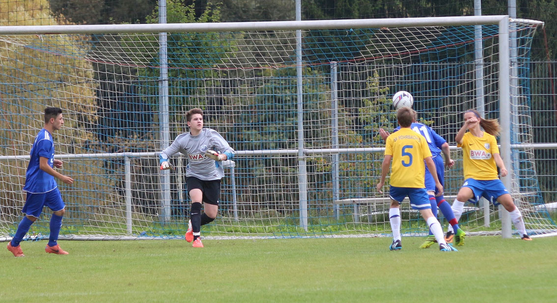 Böser Rückschlag für die B-Jugend des SV Rohrbach/S. am zweiten Spieltag der Landesliga Rhein-Neckar. Nach dem positiven 3:3 Saisonauftakt in Mannheim-Gartenstadt ging das Heimdebüt gewaltig daneben. Mit 1:7 unterlag das Team des Jahrgangs 1998/99 gegen den SV 98 Schwetzingen. Dabei fing alle so gut an. Dennis Bauer brachte sein Team nach 18 Minuten mit einem herrlichen Freistosstor in Führung. Wenig später hatte er gar die 2:0 Führung auf dem Fuss, scheiterte aber am Gästekeeper.
