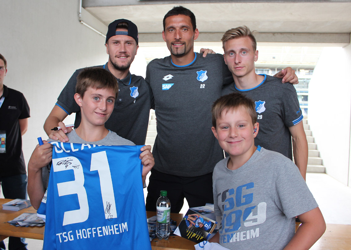 So groß war das Gedränge um die begehrten Autogramme der Hoffenheimer Spieler und Trainer noch nie. Nach dem Testspiel gegen AFC Bournemouth bildeten sich lange Schlangen im Tribünenbereich der Rhein-Neckar-Arena. In den Zugängen zum Innenbereich hatten sich die Profis großflächig verteilt und geduldig die Wünsche der Fans erfüllt. Das größte Gedränge, die längste Menschenschlange bildete sich zweifellos bei Kevin Kuranyi. Der prominente Neuzugang erfüllte jeden Fan-Wunsch, stellte sich lächelnd zum Fotoshooting und schrieb auf alle ihm vorgehaltenen Fanartikel. Kuranyi, das zeigte sich bereits beim ersten Training am Freitagnachmittag in Zuzenhausen, ist ein Star mit Fannähe.