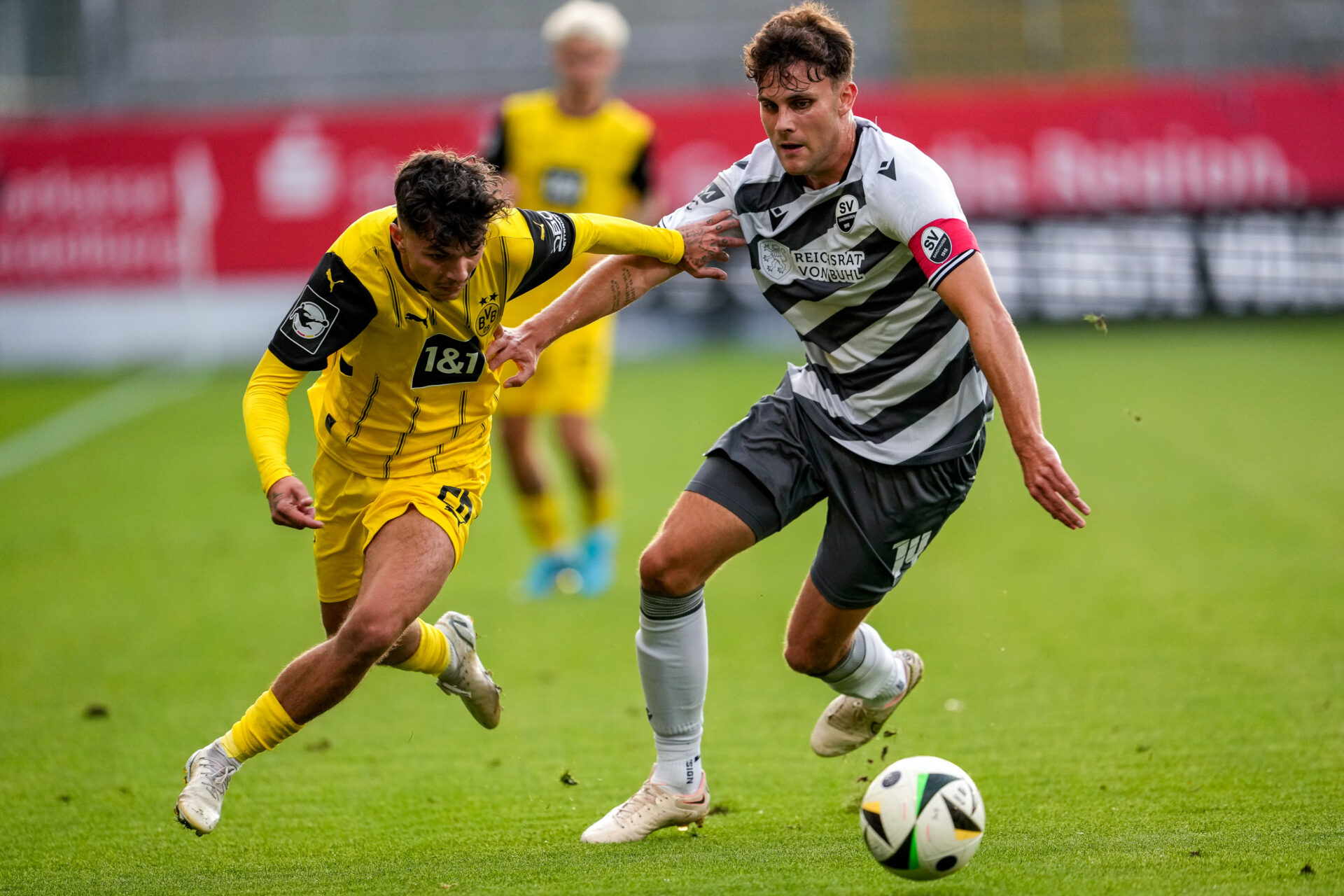 Dominic Baumann jubelt über seinen treffer zum 2:0 gegen Borussia Dortmund II