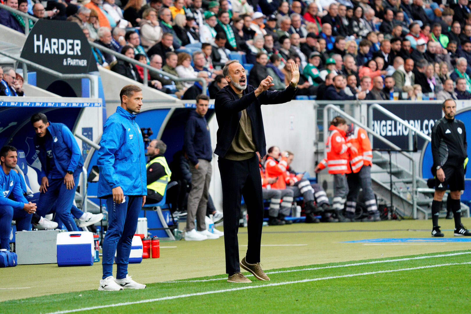 Ein engagierter Hoffe-Trainer Pellegrino Matarazzo am Spielfeldrand