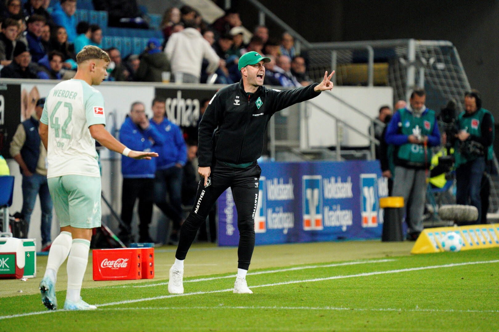 Erst in den letzten 25 Minuten gingen die Gastgeber mehr Risiko ein, warfen nochmals alles nach vorne und drängten Werder in die Defensive. Aufregung herrschte in der 67. Minute, als der eingewechselte Valentin Gendrey auf dem Weg zum Tor zwischen zwei Gegenspielern vor dem Strafraum zu Fall kam. Doch Reichel ließ nach dem Einsteigen von Malatini weiterspielen, weil der Argentinier den Ball getroffen hatte. Kurze Zeit später hatte die Matarazzo-Truppe noch Pech, als der Ball nach einer schönen Einzelleistung von Jakob Bruun Larsen von Malatini noch kurz vor der Torlinie zur Seite gegrätscht wurde (81.).