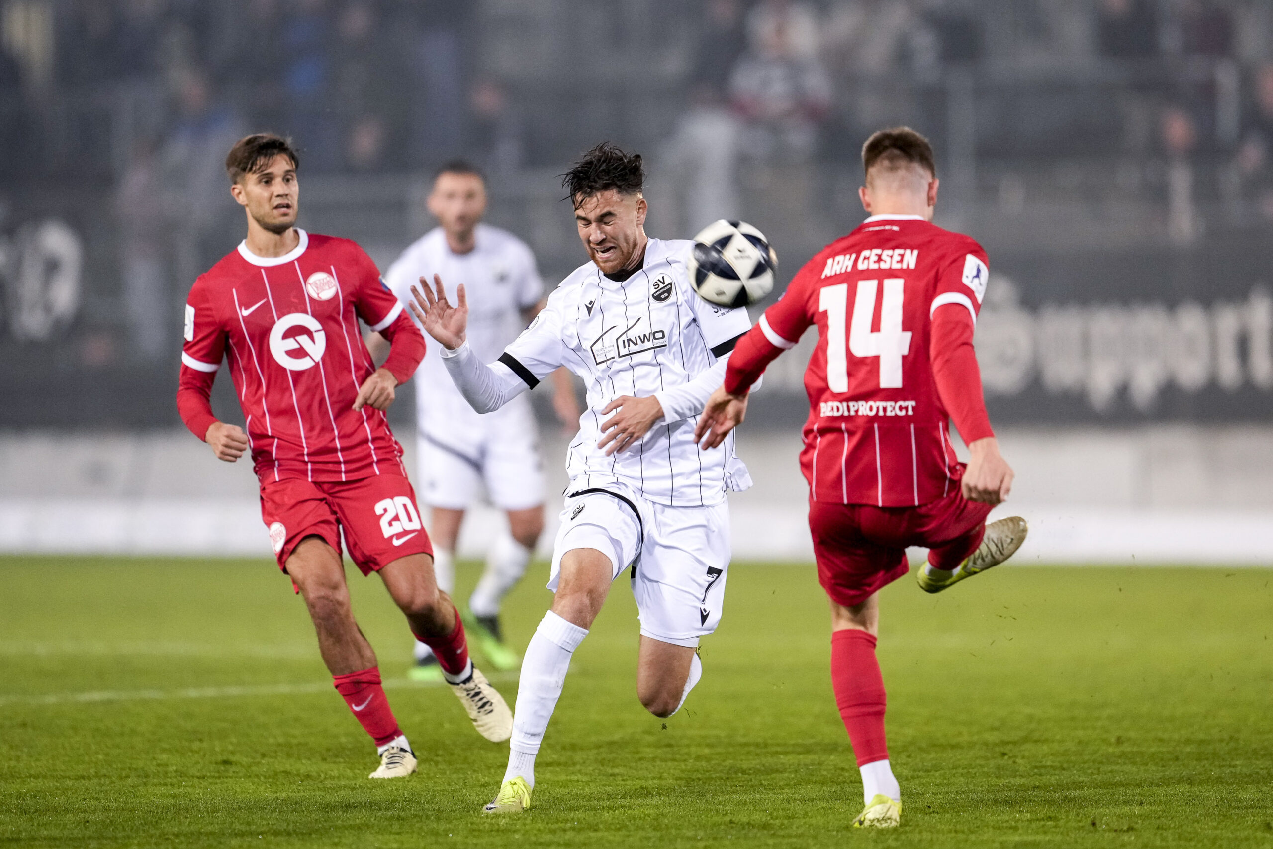 SV Sandhausen: Schneller – Zahnen Martinez, K. Schulz, Gipson – Kolbe, Krauße, Tarnat, Halbauer – Mamutovic, de Meester – Ramsak (Testroet)