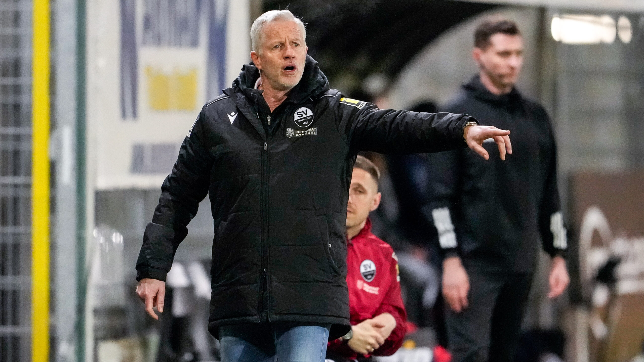 SVS-Coach Jens Keller pusht seine Spieler am Spielfeldrand