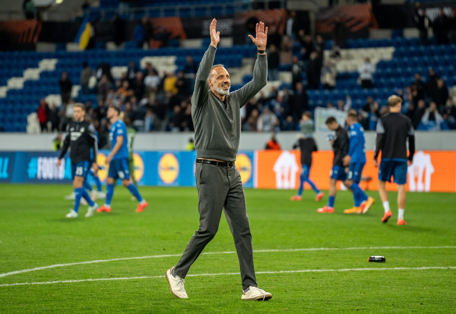 Matthias Lautenschläger ist ein in der Sinsheimer PreZero Arena oft gesehener Besucher. Soweit es ihm seine Termine ermöglichen, verfolgt er regelmäßig die Heimspiele der TSG Hoffenheim. Seit drei Jahren ist der geschäftsführende Gesellschafter der MLP Academics Heidelberg Dauerkartenbesitzer und ein großer Fan des Gesamtkonzeptes der Kraichaguer, vor allem von der Jugendarbeit und der Durchlässigkeit vom Nachwuchs- in den Profibereich. Zusammen mit seinem 85-jährigen Vater Manfred Lautenschläger, dem Gründer der Firma MLP, war er auch beim ersten Europa League-Heimspiel der Hoffenheimer gegen Dynamo Kiew auf der nur sehr spärlich besetzten Haupttribüne zu Gast. Sowohl Vater als auch Sohn haben vor dem Anpfiff kräftig beim Badnerlied mitgesungen. Am Rande der Partie unterhielt sich bwa-sport.de mit den beiden Vollblut-Basketballern, die auch eine große Liebe zum Fußballsport haben über die Situation bei der TSG Hoffenheim.
