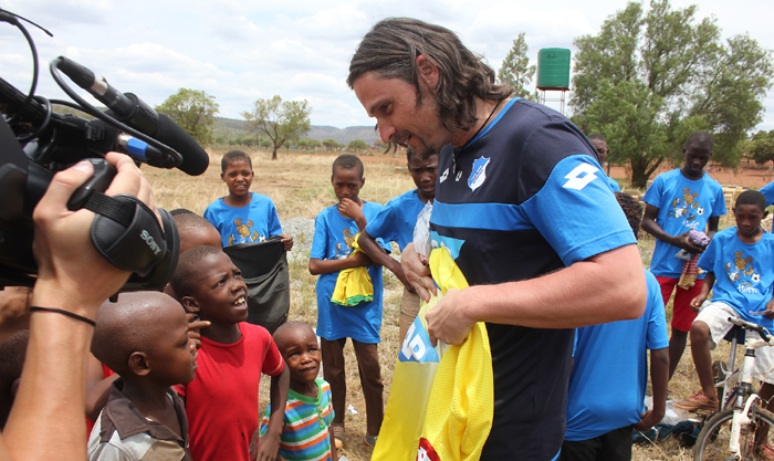 Abseits des Trainingsplatzes hat die TSG eine Schule in Pella, in der Nähe des Trainingscamps in Rustenburg, besucht. Mit im Gepäck hatten die Hoffenheimer jede Menge TSG-Trikots und Hoffi-Shirts, die sie dort an Kids verschenkten. Mit den Worten von Lutz Pfannenstiel, Head of International Relations bei der TSG: „Ein Elch für Afrika.“