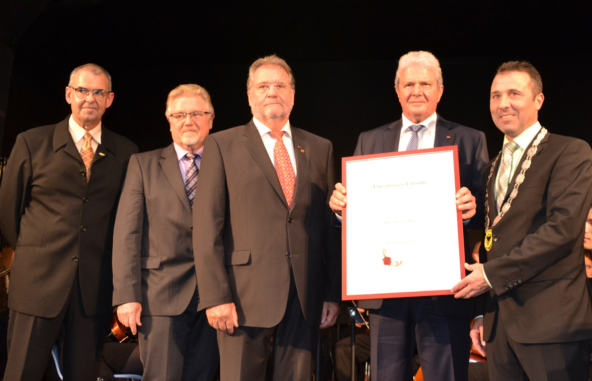 Zu einem feierlichen Anlass füllte sich am Freitagabend die neue Sporthalle der Carl-Orff-Schule mit Gästen aus nah und fern: Grund war die Einladung zur feierlichen Verleihung der Ehrenbürgerwürde an Herrn Dietmar Hopp. Der Gemeinderat hat dies bereits am 30. Juni 2015 einstimmig beschlossen. „Die heutige Ehrung soll Ihnen lieber Herr Hopp, wenn auch nur symbolisch, etwas von dem zurückgeben, was Sie für unsere Stadt und auch für die Region geleistet haben“, so Oberbürgermeister Jörg Albrecht. „Im Namen des Gemeinderates und der Sinsheimer Bürgerschaft möchte ich mit dieser Ehrung unsere Hochachtung zum Ausdruck bringen und dadurch Ihr außergewöhnliches Engagement würdigen.“