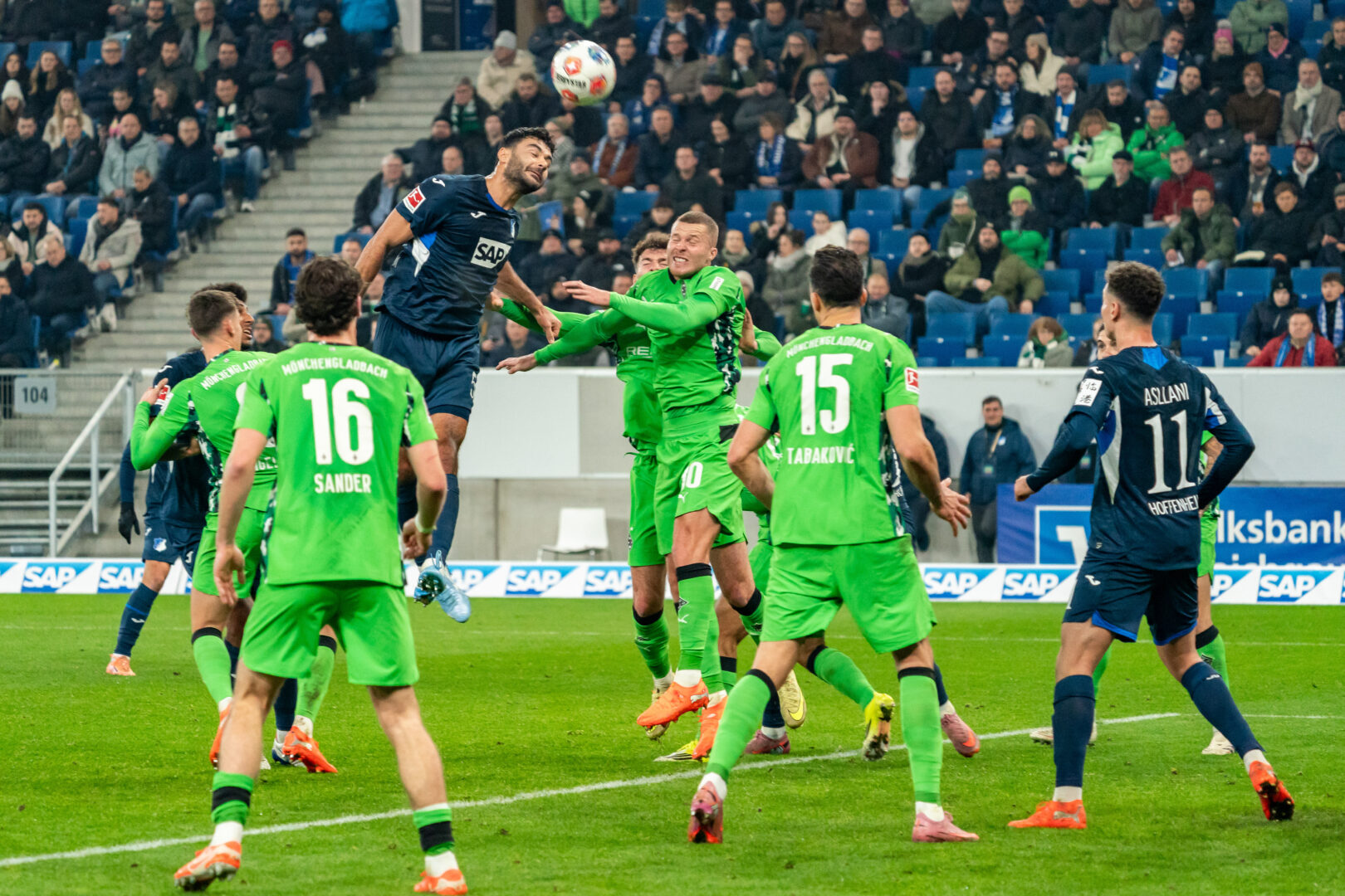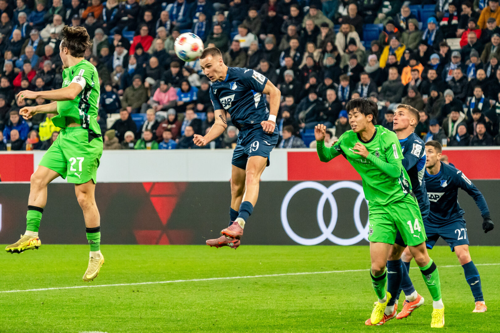 Die Kraichgauer waren von Anpfiff an „Herr im eigenen Haus“. Bereits nach vier Minuten hatte Ozan Kabak die erste dicke Torchance, als er nach einer Ecke per Kopfball an der Gladbacher Latte scheiterte. Nachdem Kramaric wenig später aus spitzem Winkel im glänzend parierenden Torhüter Moritz Nicolas seinen Meister fand (7.) war es nur noch eine Frage der Zeit, wann die Gastgeber aufgrund ihres großen Aufwandes in Führung gehen.