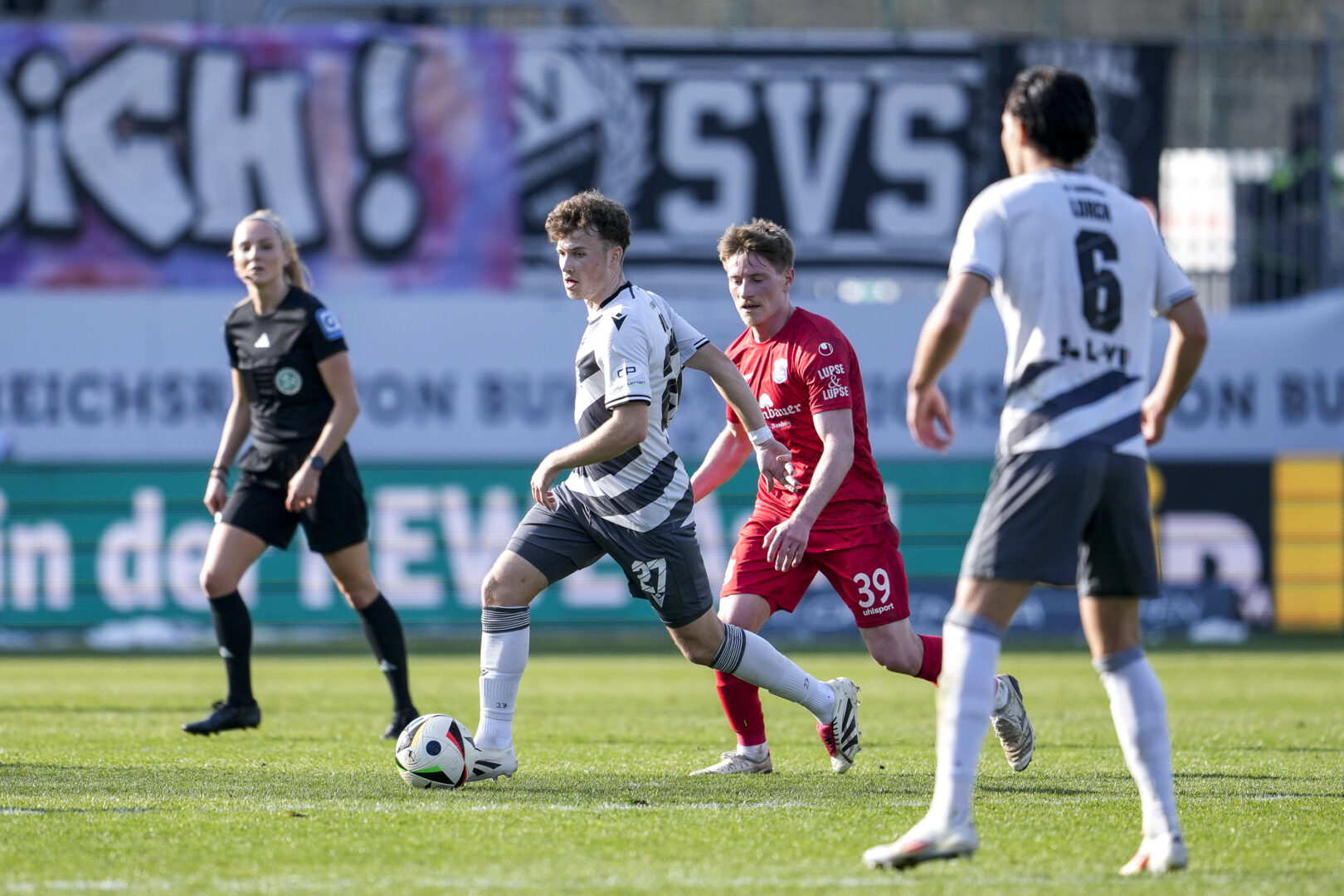 SV Sandhausen: Richter – Lang, Lewald, Girdvainis – Stolze, Schikora, Duman, Ehlich – Halimi – Otto, Baumann (Granath)