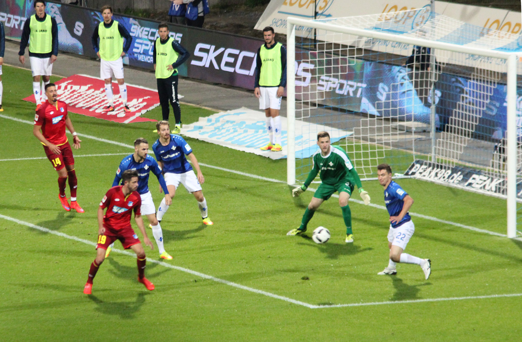 Am 4. Bundesliga-Spieltag trennen sich der SV Darmstadt 98 und die TSG Hoffenheim in einer zwar kampfbetonten aber keines falls hochklassigen Partie mit 1:1. Für die Kraichgauer war es das vierte Remis in Folge. Besonders ärgerlich aus Sicht der Gäste, dass der Ausgleich, wie schon beim Ligastart gegen RB Leipzig, erneut in der Nachspielzeit fiel und so wertvolle Punkte auf der Strecke blieben. Die TSG ging unmittelbar nach Anpfiff der 2. Spielhälfte durch den Kroaten Andrej Kramaric in Führung. Die Lilien gaben zu keinem Zeitpunkt der Partie auf und erkämpften sich fast mit dem Abpfiff durch den 17 Minuten zuvor eingewechselten Denys Oliinky den nicht unverdienten Ausgleich.