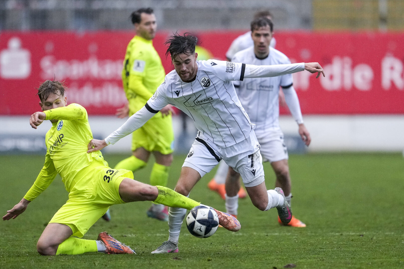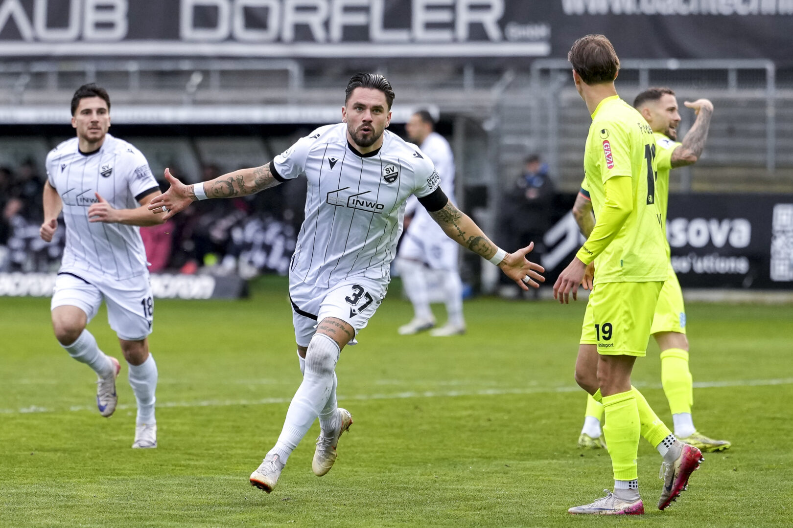 SV Sandhausen: Schneller – Akmestanli, Schulz, Gipson – Kolbe, Tarnat, Inaler, Halbauer – Mamutovic, Herrmann – Testroet