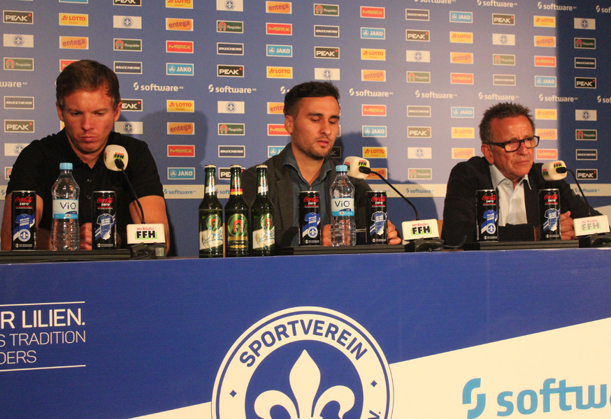 Julian Nagelsmann (Trainer TSG Hoffenheim): „Es war ein absolut verdienter Punkt die Darmstadt. Ähnlich wie gegen Leipzig schlafen wir in der Nachspielzeit. Wir gehen nicht mit dem einlaufenden Spieler mit und verhindern vor allem die Flanke nicht. Wir haben nicht konsequent mit allen Mann bis zum Schluss verteidigt, obwohl Darmstadt alles nach vorne geworfen hat. Deshalb haben wir es letztlich nicht verdient zu gewinnen. Wir sind gut ins Spiel gekommen, nutzen aber, wie in allen bisherigen vier Saisonspielen, unsere frühe Chance nicht. Dann haben wir die Geduld verloren und Darmstadt nach gut einer Stunde geweckt. Nach der Halbzeit kommen wir super raus und machen das Tor. Die Situationen danach spielen wir nicht gut zu Ende. Gegen Ende haben wir das Fußballspielen eingestellt, nur noch lange Bälle gespielt und bekommen sehr spät das Gegentor.“