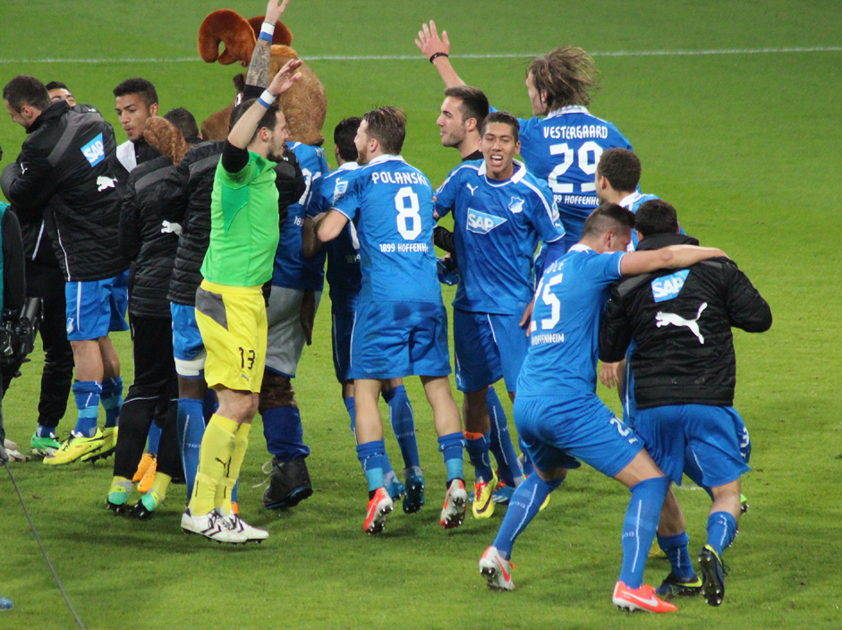 Stadionmoderator Mike Diehl sorgte schon bei seiner Stadionshow am späten Mittwochabend für musikalische Partystimmung. Deutschlands Schlagerhit Nummer eins von Helene Fischer „Atemlos“ halte mehrfach beim Aufwärmprogramm über die Stadionboxen. Die 1899-Spieler schien dies zu beflügeln, denn auch für sie hieß es gegen Hannover 96 aufopferungsvoll über 90 Minuten „Atemlos durch die Nacht“.