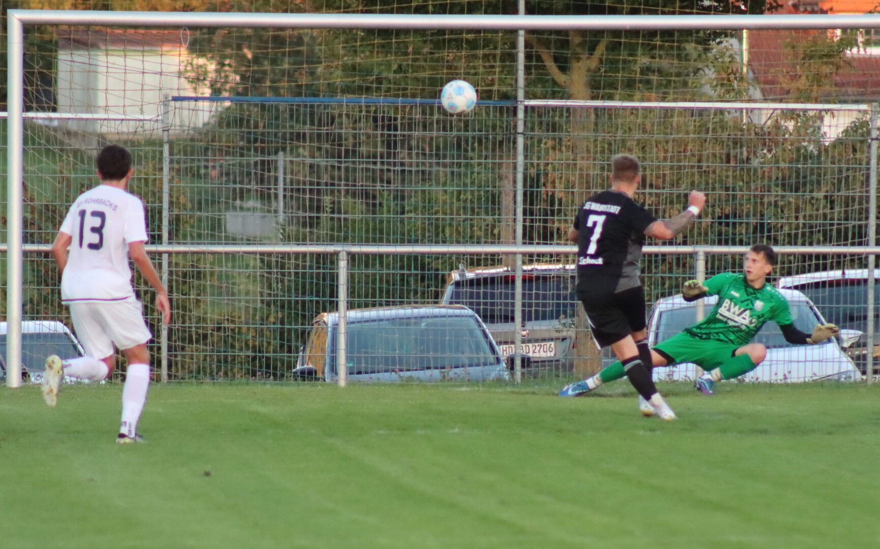 Nachdem SV-Keeper Erik Albrecht, der nach wie vor den verletzten Nico Romig vertrat, bei einem Schuss aus kurzer Distanz von Silas Schilling glänzend parierte, hatten die Gäste nach einer Viertelstunde durch einen zugesprochenen Strafstoß die große Chance zum Ausgleich. Doch der ansonsten sichere Schütze Dominik Schock setzte den Ball über das Tor (16.).