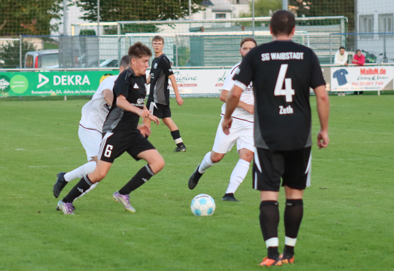 Nach einigen Chancen auf beiden Seiten gelang den Waibstädtern nach einer halben Stunde der nicht unverdiente Ausgleich durch Tim Grab, der aus spitzem Winkel zum 1:1 traf (30.).
