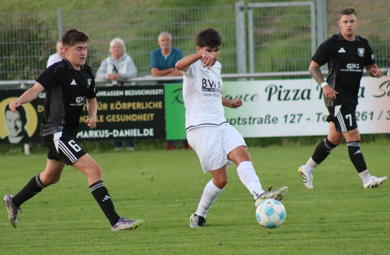 Wenig später hatten die Gastgeber die erneute Führung quasi auf dem Kopf: Nach einer Ecke schraubte sich Matteo Francesca am höchsten, doch sein Kopfball prallte an die Unterkante der Latte und von da in die auffangbereiten Hände von SG-Keeper Koch (37.). So blieb es beim Unentschieden zur Halbzeitpause.