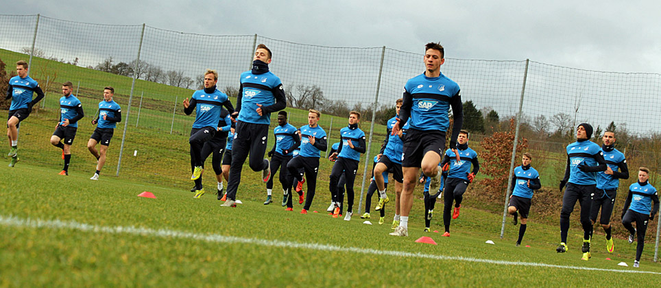 Ganz so lange, wie es die Lücke im Spielplan vermuten lässt, war die Winterpause der U23 nicht. Nach dem letzten Punktspiel 2015 trainierte das Team von Coach Marco Wildersinn noch zwei Wochen weiter. Am Mittwochnachmittag startete „Hoffe zwo“ schließlich nach einem gemeinsamen Mittagessen und einer kurzen Kabinenansprache in die Vorbereitung auf die Restrückrunde der Regionalliga Südwest.Nach dreieinhalbwöchiger Pause ging es also endlich wieder los, der bislang milde Winter ließ es zu, dass die U23 auf dem heimischen Rasen im Trainingszentrum loslegen konnte und nicht etwa auf einen Kunstrasenplatz ausweichen musste. Mit Ausnahme von Pelle Jensen, der weiterhin an einer Sprunggelenksverletzung laboriert, waren alle Mann an Bord. Kein Spieler hat den Verein verlassen, kein Testspieler bietet sich derzeit an. „Unser Kader ist groß genug“, sagt Wildersinn.