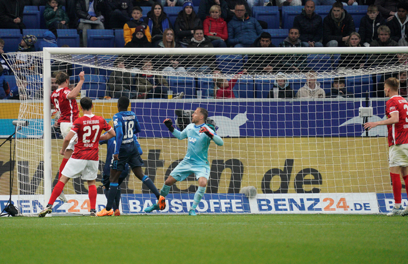 Pech hatte in der Nachspielzeit der in dieser Saison nur selten eingesetzte Adams, als er mit einem Kopfball an SC-Torhüter Flekken scheiterte und Rutter beim Nachschuss übers Tor zielte (90.+3). Während die südbadischen Fans die Sieger euphorisch feierten und bereits vom einem möglichen Sieg im DFB-Pokalfinale gegen RB Leipzig träumten, quittierten die Hoffe-Fans die engagierte und aufopferungsvolle Leistung ihrer Mannschaft nach dem Abpfiff mit Beifall. Zuletzt gab es nach der Heimniederlage gegen Bochum und beim torlosen Remis gegen Absteiger Fürth am Ende lautstarke Pfiffe.
