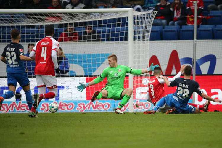 In der zweiten Hälfte ging es deutlich turbulenter zu. Zunächst verweigerte Schiri Benjamin Cortus den Gastgebern einen Strafstoß, nachdem der Ball zunächst Abdou Diallo und dann Danny Latza an die Hand sprang (51.). Hoffenheim drückte weiter auf die Führung, drängte den Gegner weit in dessen Hälfte und belohnte sich schließlich. Nach einem Gnabry Freistoß drückte Kramaric den Ball aus dem Gewühl heraus aus kurzer Distanz im zweiten Versuch zur 2:1-Führung über die Linie (67.). Dem nicht genug, erhöhte Szalai mit einem Flachschuss von rechts ins lange Eck auf 3:1 (74.).