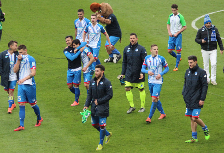 Groß der Jubel bei den 25.000 TSG-Fans, die während der gesamten 90 Minuten ihre Mannschaft lautstark unterstützten und den 50. Bundesliga-Heimsieg euphorisch feierten.