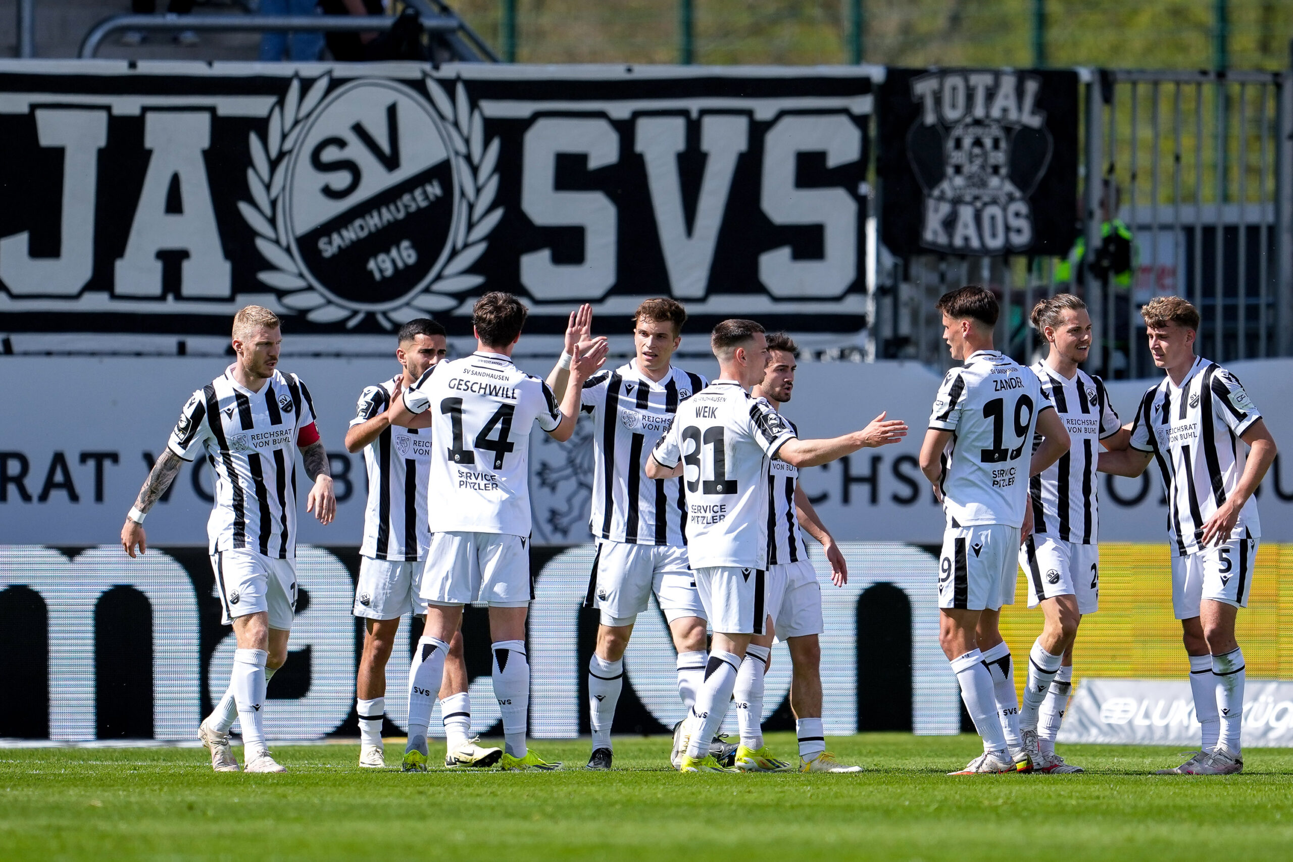 SV Sandhausen: Rehnen – Zander, Fuchs, Girdvainis (Knipping), Ehlich – Schuster, Mühling – Stolze, Greil, Burcu – Pink