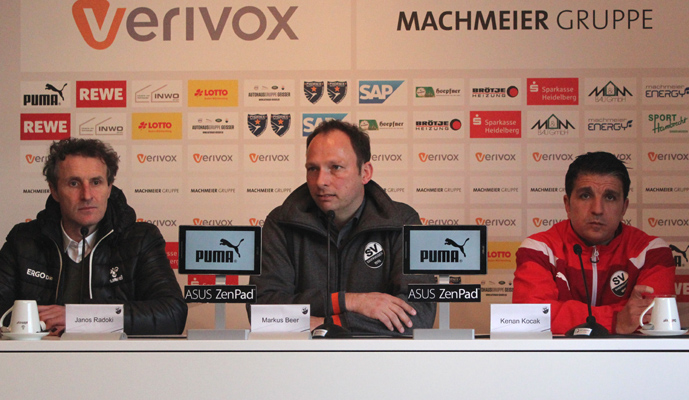 Kenan Kocak (SV Sandhausen): „Wir hatten in den ersten zehn Minuten Probleme ins Spiel zukommen. Danach wurde es besser und wir sind durch einen tollen Freistoß in Führung gegangen. Danach haben wir zwei sehr gute Möglichkeiten ungenutzt gelassen. Erneut war es ein Standard, der uns in der 88. Minute um den Lohn brachte. Unsere Einwechslungen haben uns nicht gut getan, das war heute sehr ärgerlich. Ob es am Schuhwerk lag, an der Einstellung oder Motivation – man kann nicht gefühlte 40 Mal ausrutschen und so leichtfertig die Bälle verschenken. Sukuta-Pasu konnte die Bälle nicht wie erwartet halten und für Entlastungen sorgen. Er hat unserem Spiel nicht gut getan. Auch das Foulspiel, das zum Freistoß und 1:1 führte war unnötig. Am liebsten hätte ich ihn wieder ausgewechselt, so hätte ich auch mitspielen können. Die falsche Einwechslung nehme ich deshalb auf meine Kappe. Die Idee vorn war, mit neuen Kräften die Bälle zu halten und Präsenz zu schaffen, doch das ging dann in die Hose. Da hätten wir besser mit einem Mann weniger gespielt. Man kann gewinnen und verlieren, das ist nicht das Thema, aber solche Dinge ärgern mich maßlos. Es geht hier um eine Gruppe von 25 Spielern, die alles hochfahren müssen. Das funktioniert nur, wenn alle mitziehen. Bei den bislang 15 Gegentreffern nach Standard waren es jedes Mal andere Gründe, die zu einem Tor führten. Heute rutschte ein Abwehrspieler im entscheidenden Moment aus.“