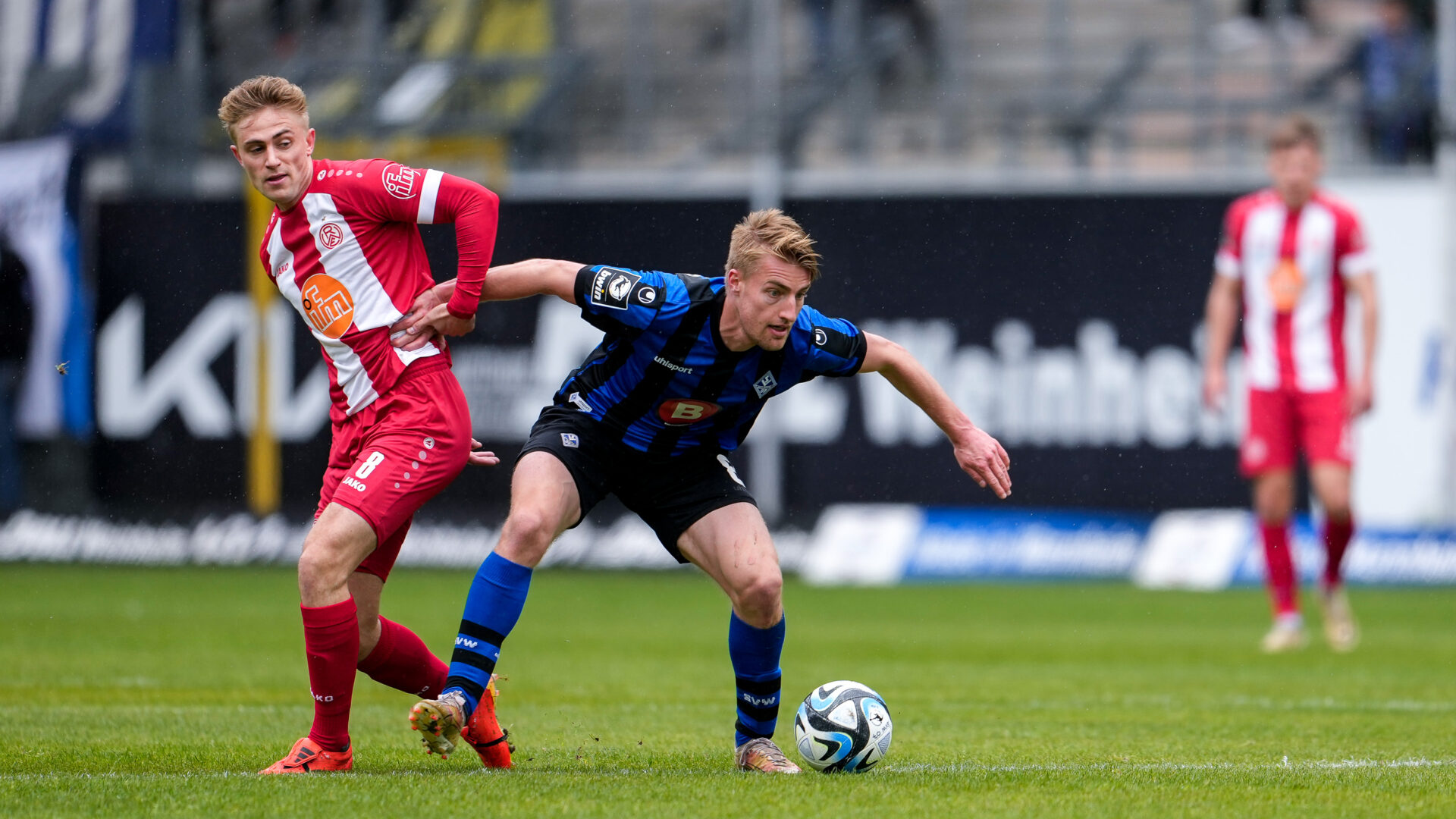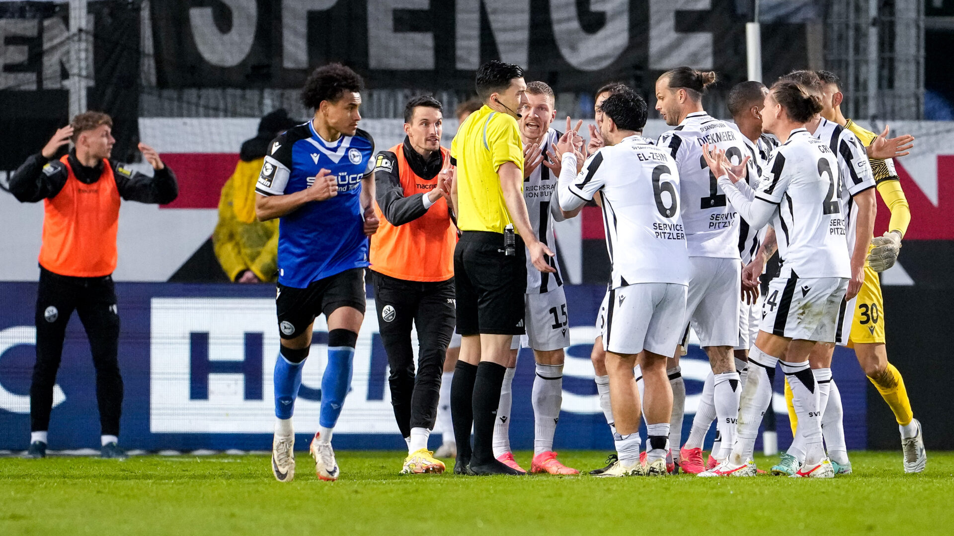 Enttäuschte Blicke bei den Sandhäuser Spielern Alexander Mühling (li.) und Yassin Ben Balla nach der letzten Heimniederlage gegen Arminia Bielefeld