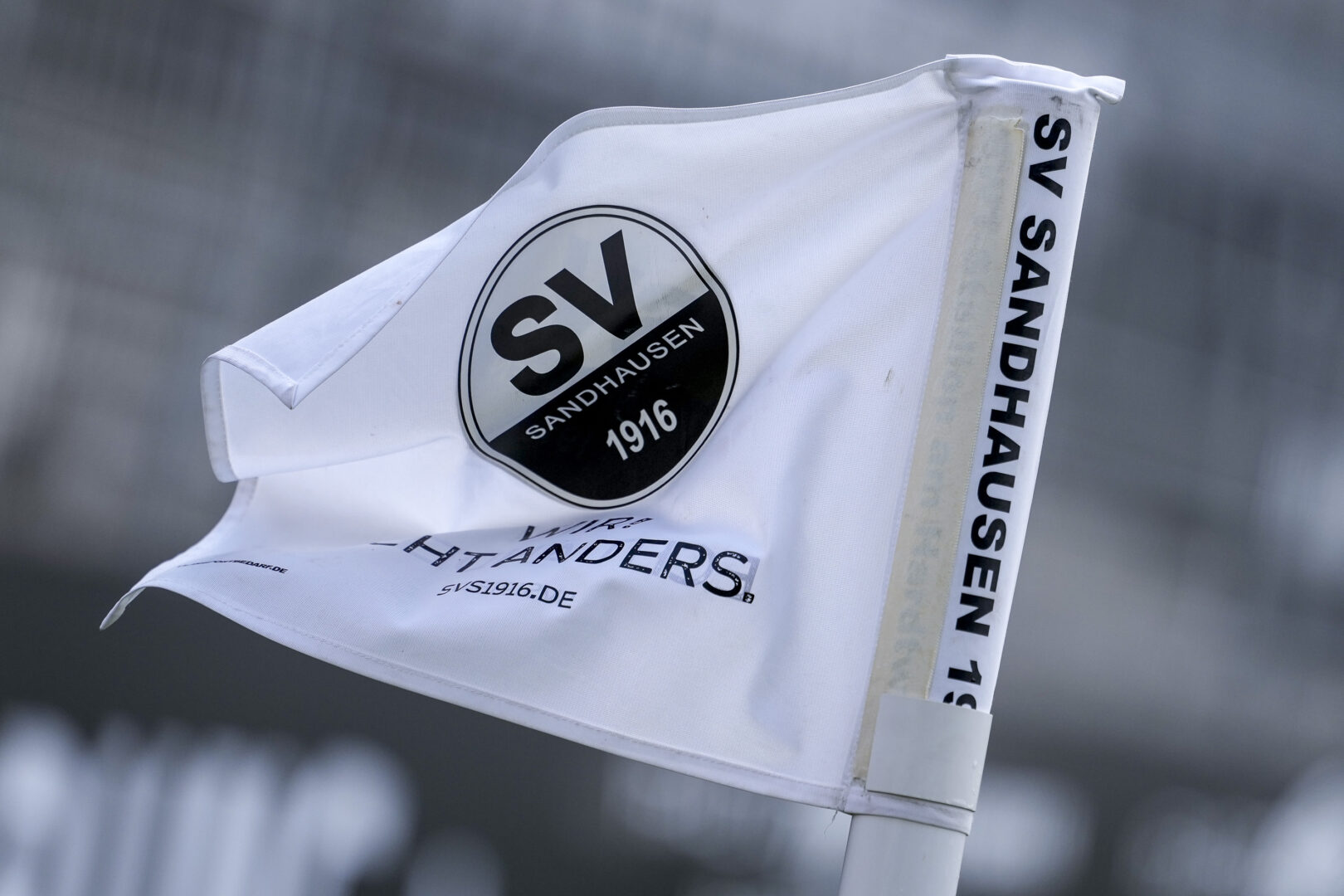 Eckfahne im Hardtwaldstadion mit dem vielsagenden Spruch: Wir! Echt anders.