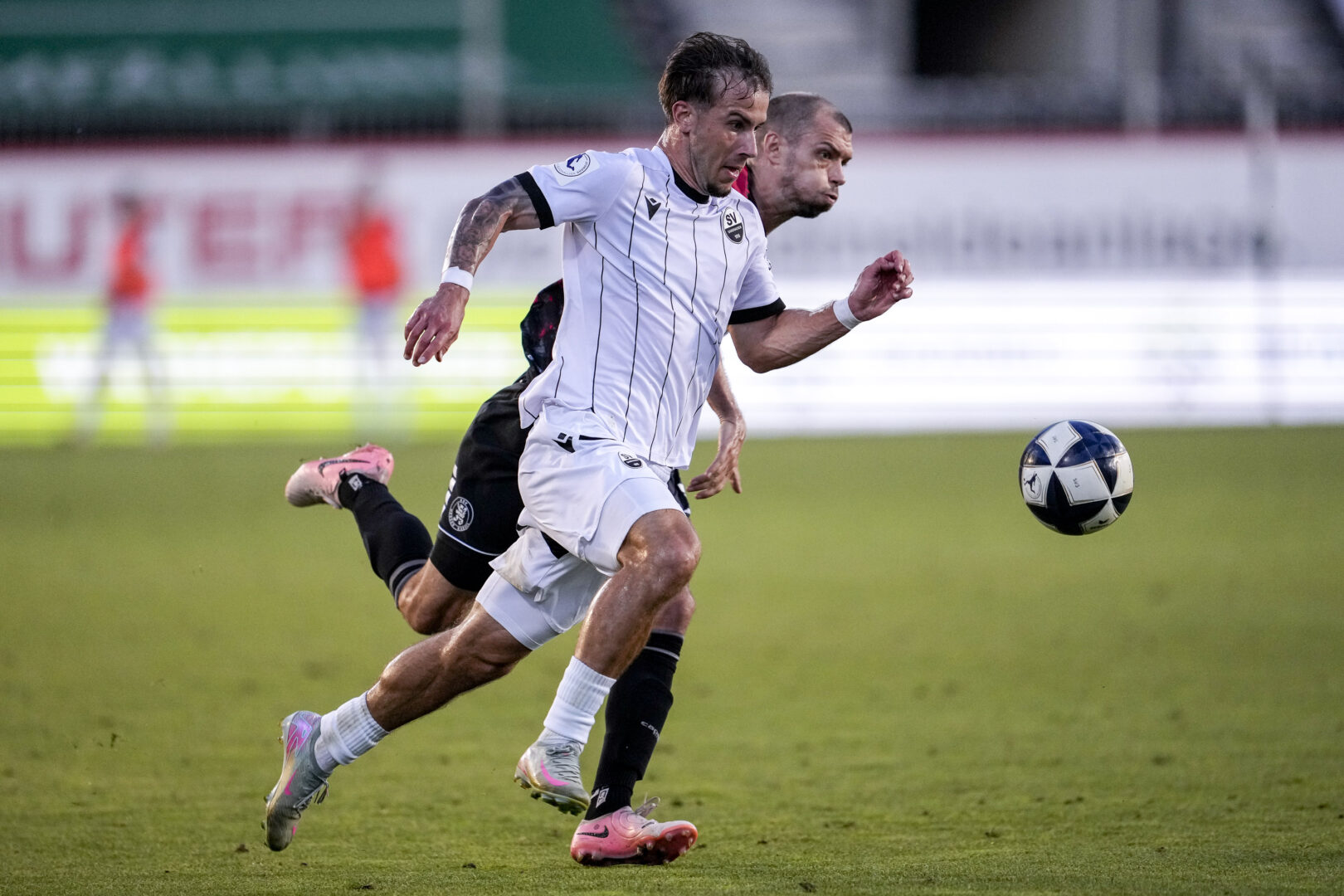 Sandhausens Louis Kolbe (vorne) im Laufduell mit Kassels Frederic Brill