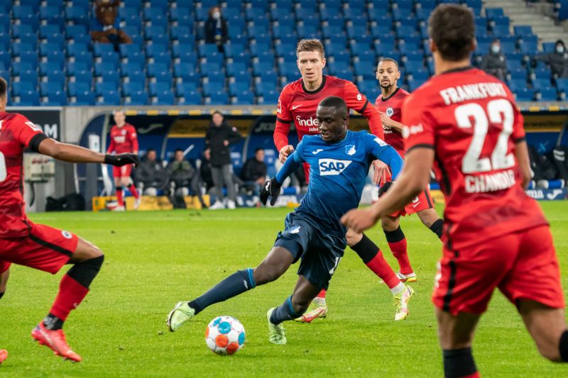TSG-Stürmer Rutter enteilt im Hinspiel seinen Frankfurter Gegenspielern. Gelingt dem Franzosen im Rückspiel endlich wieder ein Hoffenheimer Stürmer-Tor?