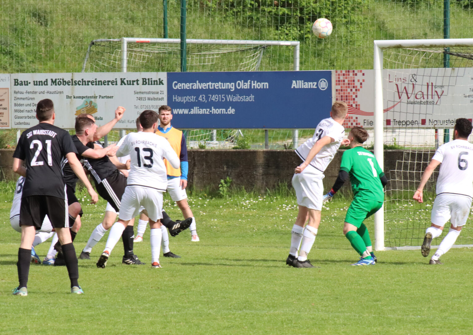 Das Duell zwischen dem Tabellensechsten und dem Dritten war ein Spiel zweier grundverschiedener Halbzeiten. Der SVR erwischte im Waibstadter Biesigstadion den besseren Start und ging nach neun Minuten in Führung. Joscha Rupp drückte dabei per Kopfball eine Heinlein-Ecke unhaltbar über die Torlinie (9.). Nur zehn Minuten später zappelte der Ball erneut im Waibstadter Netz. Wieder hatte Co-Trainer Christian Heinlein eine Ecke scharf vors SG-Tor getreten und Rupp per Kopfball vollendet (21.). Doch Schiedsrichter Soner Dinler aus Mannheim verweigerte den Gästen diesen Treffer wegen angeblichem Foulspiel. Während man für SV-Trainer Joachim Heger diese Tor durchaus hätte geben können, blieb der Unparteiische bei seiner Entscheidung: „Den Treffer zum 2:0 musste ich zurücknehmen, weil der Rohrbacher Spieler Rupp beim Kopfball zuvor den Gegenspieler aus meiner Sicht eindeutig weggeschupst hat.“
