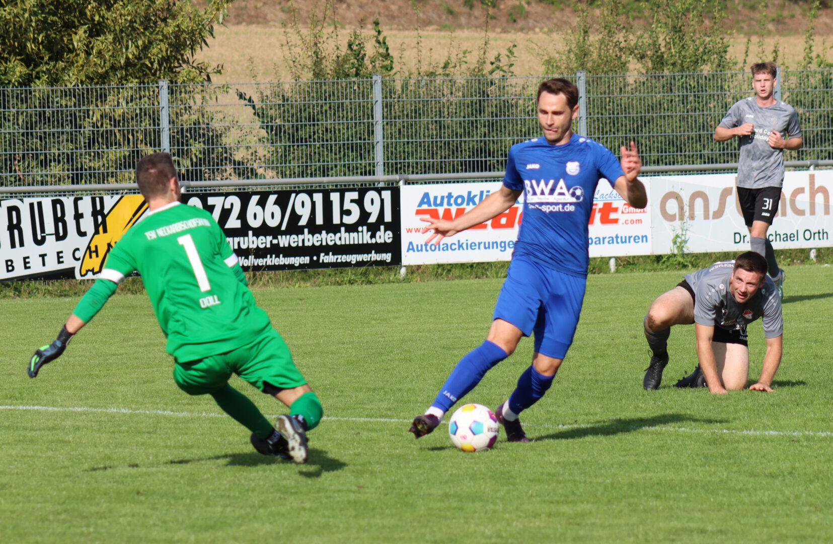 Wenig später bot sich dem TSV die große Chance zum Ausgleich, nachdem Spielertrainer Daniel Hotel mit einem 20-Meter-Freistoß am linken Pfosten scheiterte (26.). Im direkten Gegenzug tauchte Romig allein vor dem gegnerischen Tor auf, lupfte den Ball aber knapp vorbei (26.). Bis zur Pause gab es auf beiden Seiten, bis auf eine gute Möglichkeit für Robert Eisele, der knapp das Gästetor verfehlte, wenig klare Toraktionen.