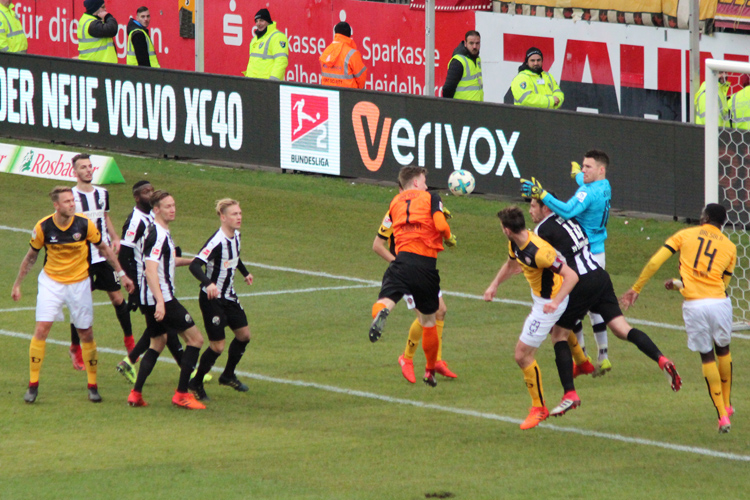 Der SV Sandhausen konnte den positiven Lauf am Ende des vergangenen Jahres in der Rückrunde fortsetzen. Nach dem verdienten Auswärtspunkt in Ingolstadt gewann das Team von Trainer Kenan Kocak gegen Dynamo Dresden durch einen später Treffer von Denis Linsmayer (80.) vor 6.234 stimmungsvollen Zuschauern mit 1:0 und kletterte in der Tabelle auf den 4. Platz. Wie schon beim Jahresauftakt vor fünf Tagen in Ingolstadt taten sich die Kurpfälzer in der ersten Hälfte auf dem neu verlegten Rasen im BWT-Stadion am Hardtwald schwer. Beide Teams neutralisierten sich, so dass es nur zu wenigen Tormöglichkeiten kam. Die beste Führungsmöglichkeit bot sich SVS-Innenverteidiger Kister, der nach einer Ecke knapp drüber köpft. In der 33. Minute verfehlte Linsmayer per Linksschuss um Zentimeter das Dynamo-Tor.