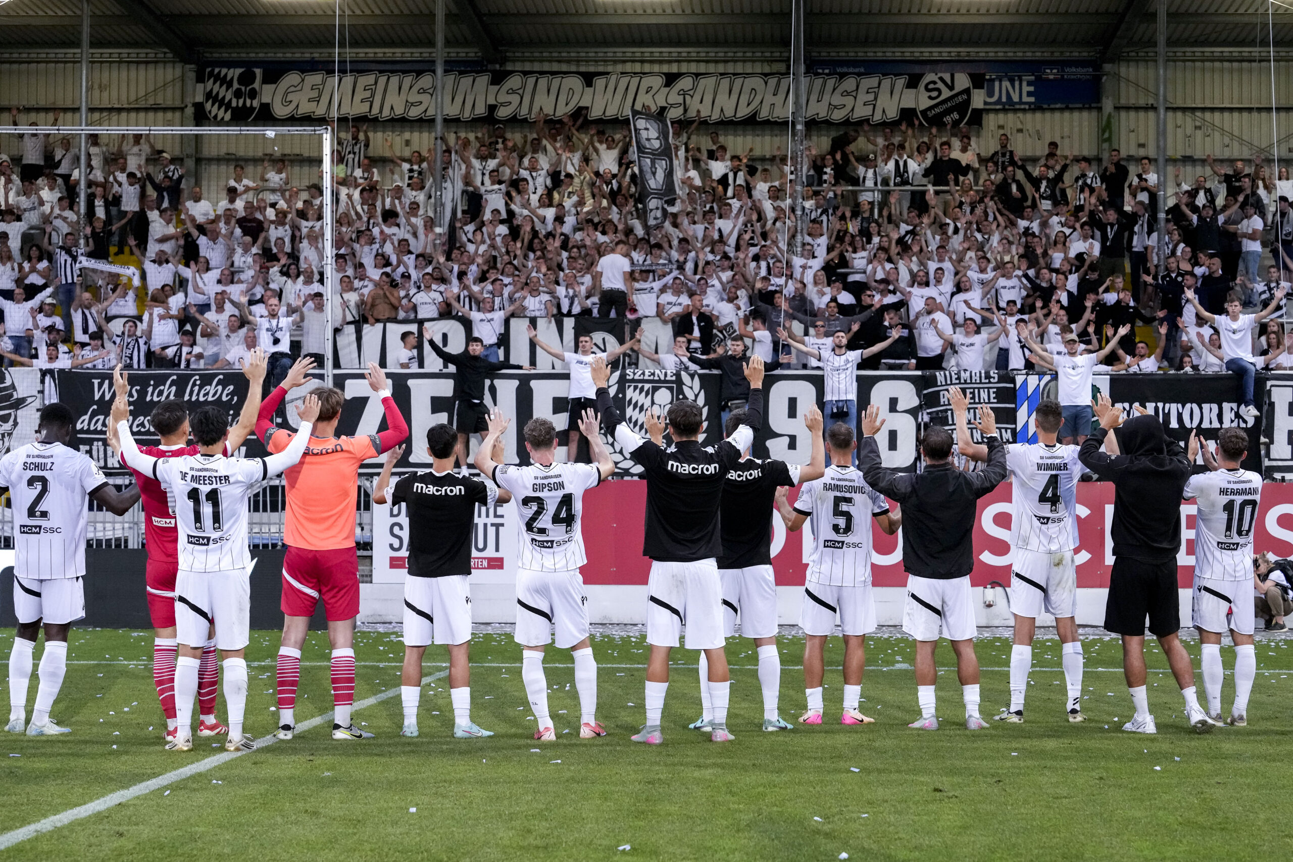SV Sandhausen: Lyska – Schulz, Wimmer, Osee – Kolbe, Ampadu, Tarnat, Halbauer – De Meester, Herrmann – Testroet