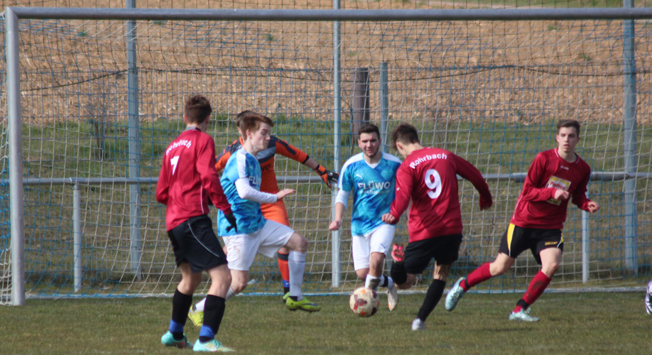 Den A-Junioren der SG Rohrbach/Sinsheim ist ein großer Schritt in Richtung Klassenerhalt der Landesliga Rhein-Neckar gelungen. Mit einem verdienten 4:1 Heimerfolg über die SG Pfaffengrund/Eppelheim konnte das Team von Trainer Bode Schlitzke den Abstand zum Abstiegsplatz auf fünf Punkte vergrößern. Bereits nach zehn Minuten brachte Philipp Öhler die Gastgeber in Führung. Jonas Willert erhöhte kurz vor dem Pausenpfiff auf 2:0. Es war eine verdiente Pausenführung, denn die Gastgeber wirkten spritziger, dynamischer und entschlossener.