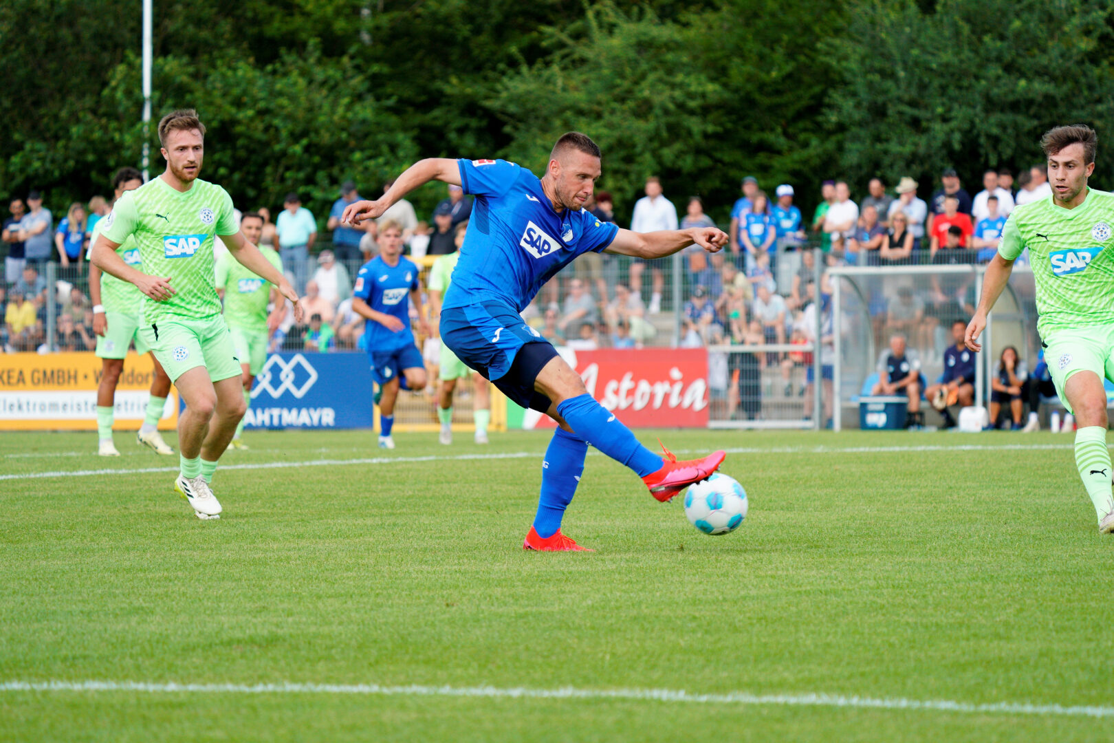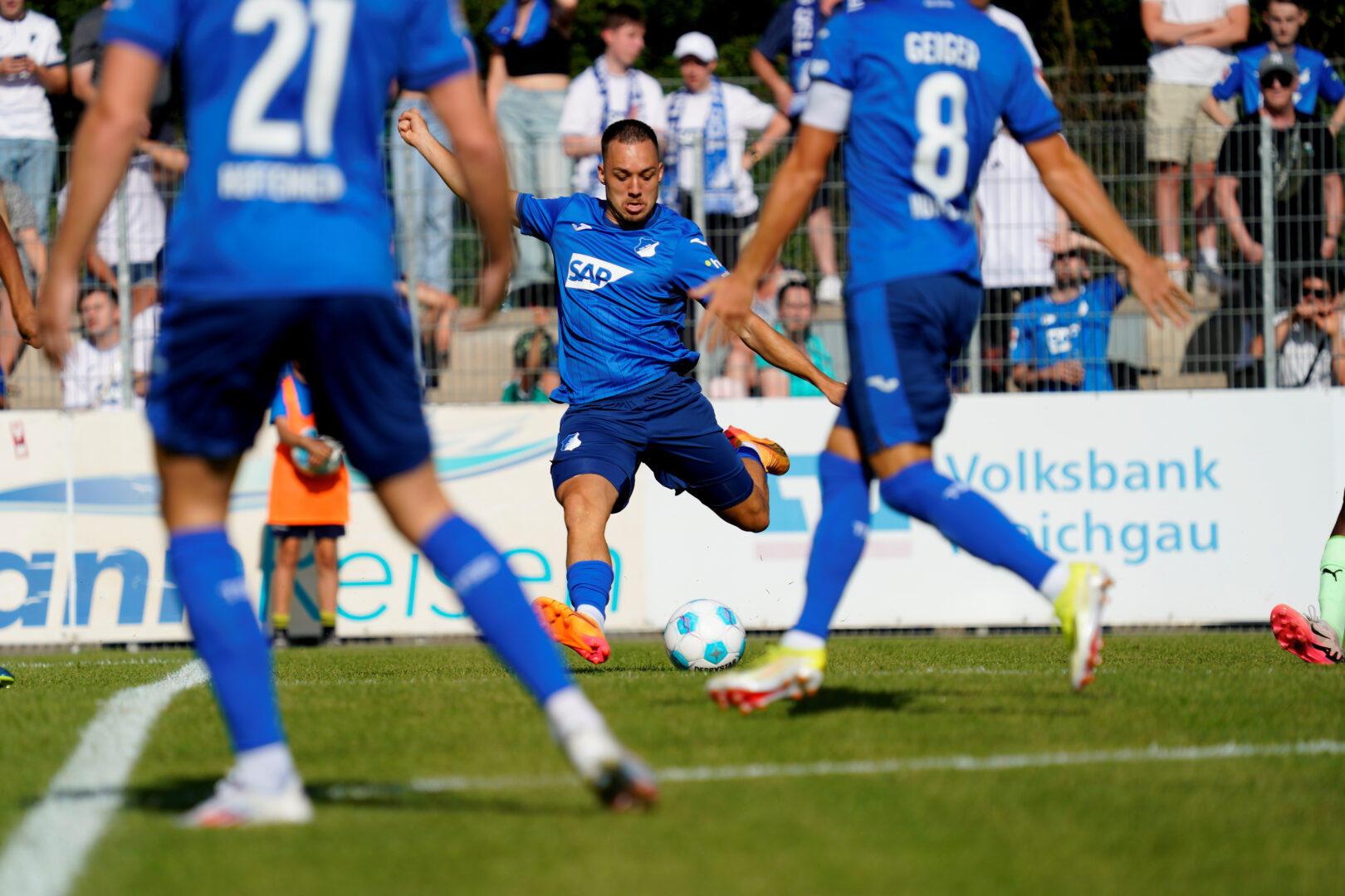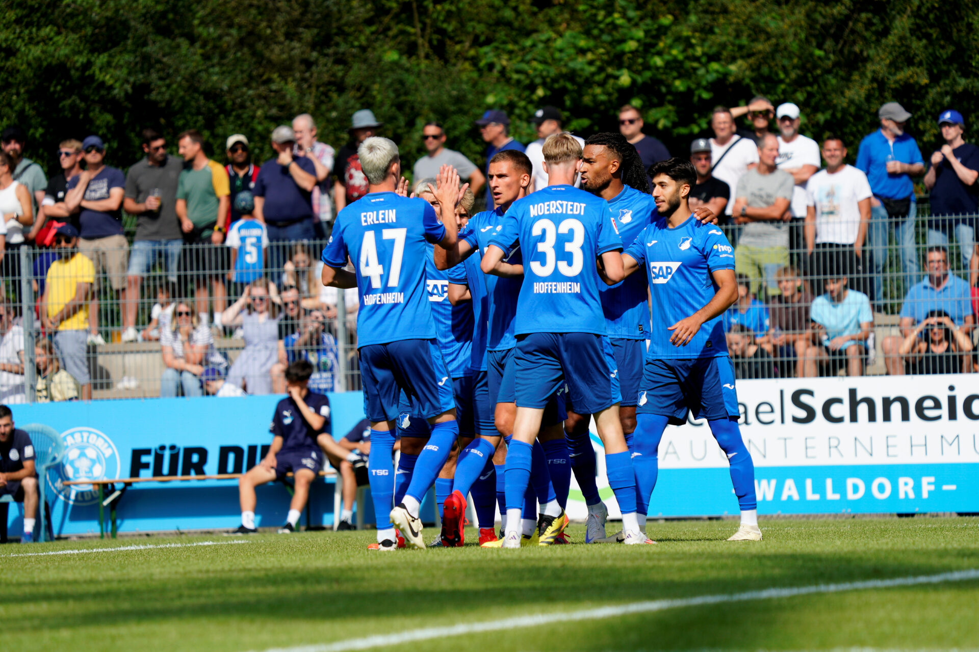 Bundesligist TSG Hoffenheim hat das erste Testspiel der Vorbereitung auf die Saison 2024/25 deutlich mit 7:1 gegen Regionalligist FC-Astoria Walldorf gewonnen. Die Tore für die Kraichgauer erzielten Damar (4.), Moerstedt (21.), Justvan (58.), Micheler (63.), Bülter (68./Foulelfmeter) und Asllani (71., 80.), für die Gastgeber traf Can Bicki (83./Foulelfmeter).
