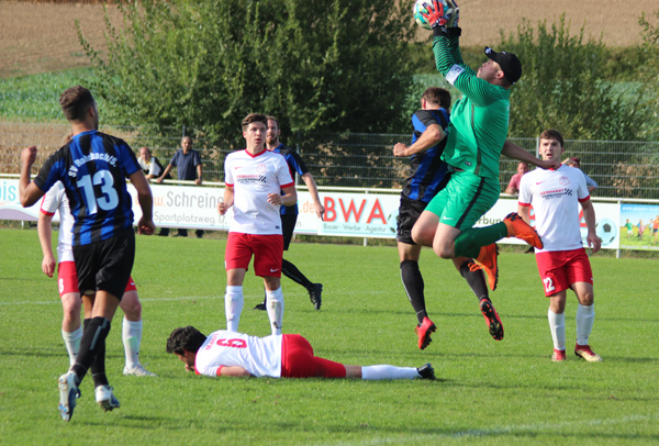 Adrian Neuberger scheitert aus spitzem Winkel am TSV-Keeper Weis