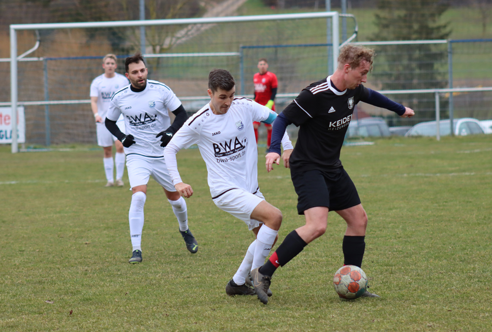 Im ersten Abschnitt spielte sich das Geschehen meist im Mittelfeld ab, beide Teams lieferten sich viele Zweikämpfe, ohne sich dabei nennenswerte Torchancen zu erspielen. Zwei Freistöße durch Brenner (19.) für die Gäste und Vogt für den SVR (37.) die ihr Ziel knapp verfehlten, waren unterm Strich zu wenig, um die Zuschauer zu erwärmen.
