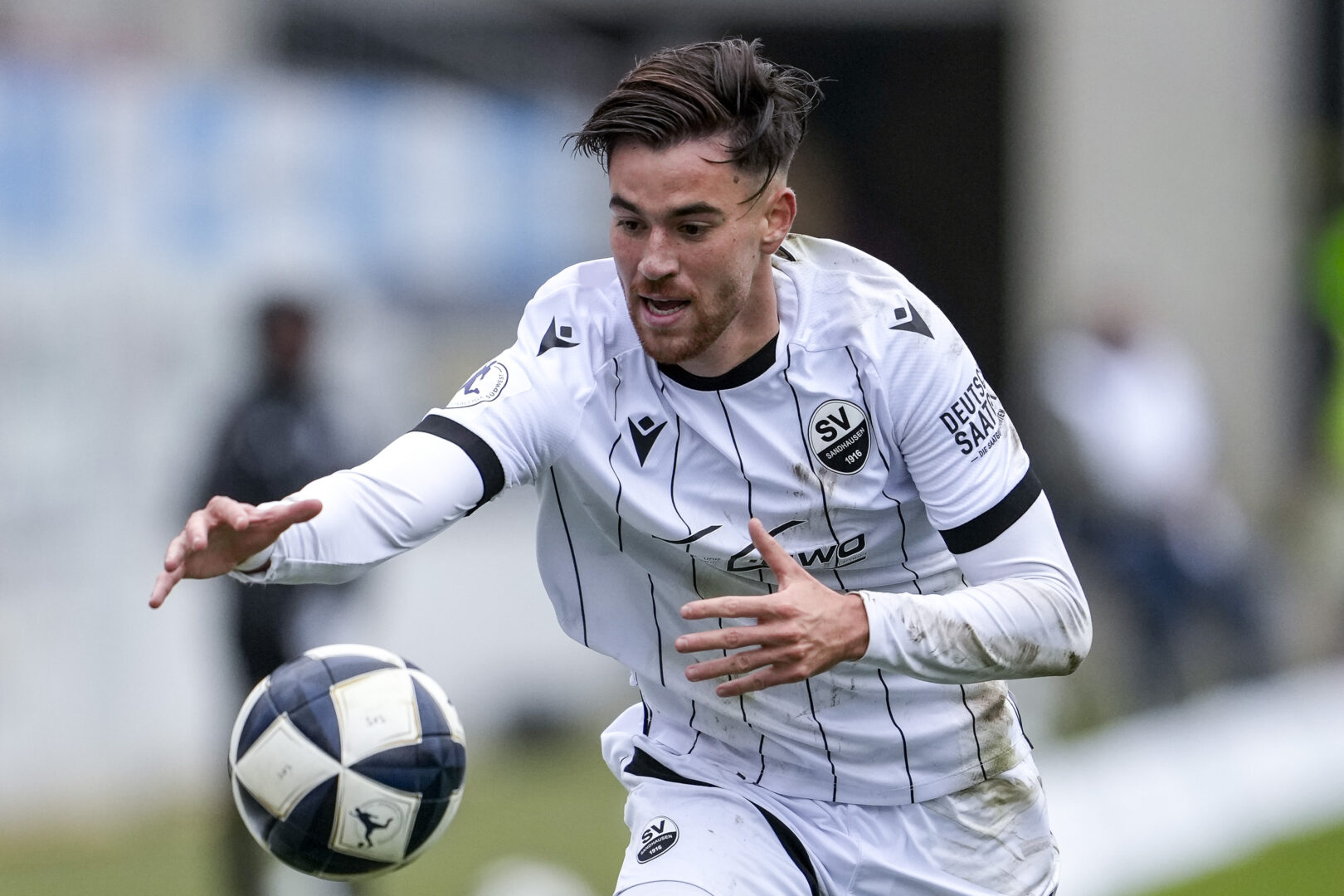 David Mamutovic greift sich das runde Leder. Der Mittelfeldspieler hatte gegen den FSV Frankfurt eine gute Möglichkeit zum Torerfolg