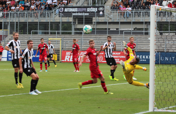 Die Kurpfälzer hatten gegen den Bundesligisten in der ersten Hälfte über weite Strecken mehr Spielanteile, die Effizienz vor dem gegnerischen Tor fehlte allerdings. Kurz vor dem Pausenpfiff kam Gästespieler Dominik Kohr im Strafraum zu Fall und der Unparteiische Matthias Jöllenbeck entschied für viele überraschend auf den Elfmeterpunkt. Kapitän Volland ließ sichj dioeses Gelegenheit nicht nehmen und verwandelte sicher in srechts unter Eck zur 2:1 Pausenführung für den Bundesligisten.