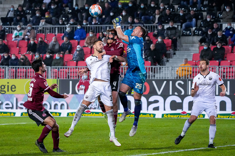 Der SV Sandhausen unterliegt am 14. Spieltag in der 2. Liga dem 1. FC Nürnberg mit 1:2 (0:0). Nach zwischenzeitlicher Führung für die Schwarz-Weißen wendete sich die Angelegenheit in den Schlussminuten zu Ungunsten der Kurpfälzer. Im Vergleich zu seinem bisher letzten Spiel in der 2. Liga (30. Oktober, 1:0 bei Dynamo Dresden) beginnt der SVS in exakt derselben Formation und personellen Aufstellung. Torhüter Patrick Drewes spielt vor der Vierkette um Dennis Diekmeier, Immanuel Höhn, Aleksandr Zhirov und Chima Okoroj (von rechts nach links). Im Mittelfeldzentrum beginnen Janik Bachmann und Erik Zenga, die Dreierreihe davor von rechts besetzen Bashkim Ajdini, Marcel Ritzmaier und Alexander Esswein. Pascal Testroet greift in der Sturmspitze an.