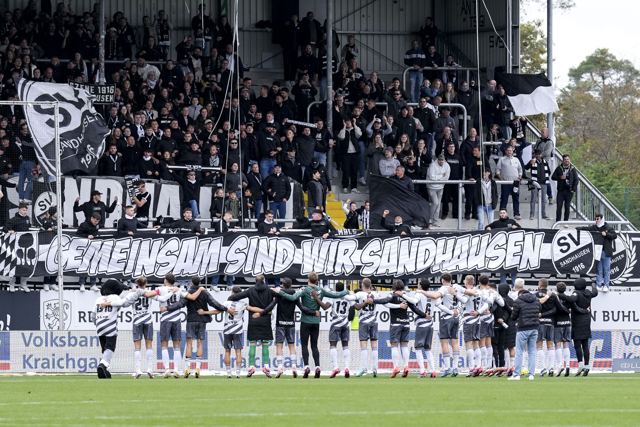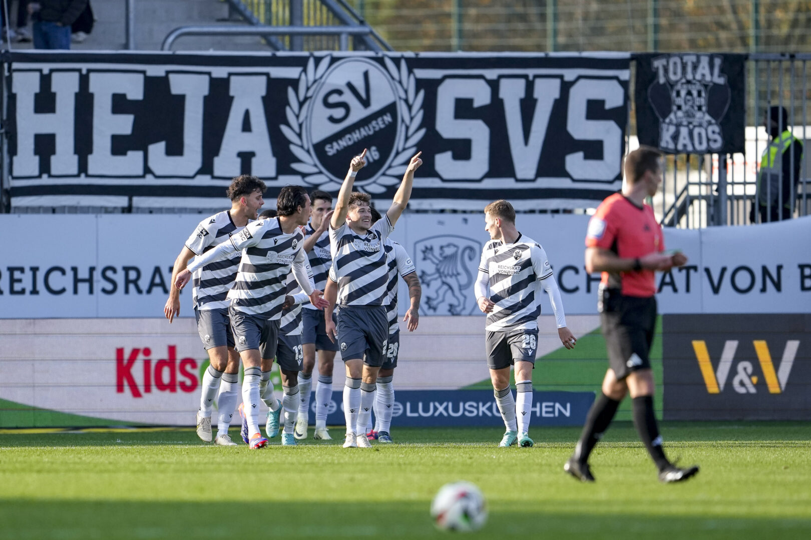 SV Sandhausen: Königsmann – Lorch, Schikora, Lewald – Stolze, Halimi, Wolf, Carls – Otto, Baumann, Iwe