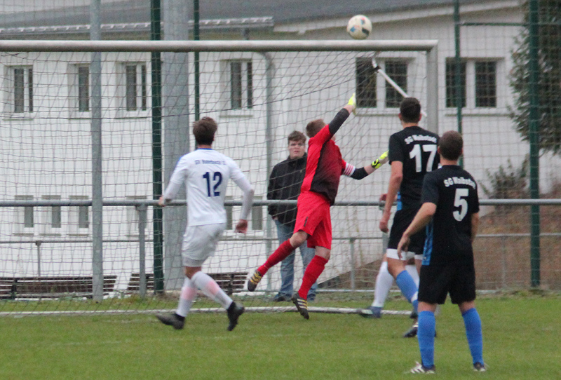 Die zahlreichen Zuschauer bekamen eine interessante und spannende erste Hälfte geboten, in der die Gäste von Beginn an die dominierende Mannschaft waren. Nach zwölf Minuten konnte SG-Keeper Kai Ernstberger nur mit Mühe einen Freistoß von Dowalil auf der Querlatte lenken. Nach der anschließenden Ecke forderten die Rohrbacher vehement Strafstoß, nachdem Christian Flaig im Sechzehner zu Boden ging. Auch in der darauffolgenden Aktion brannte es lichterloh im SG-Strafraum, als Ernstberger einen Kopfball von Fabian Hack parieren konnte, der Nachschuss von Nils Ohlhauser zunächst geblockt wurde und dann Robin Karolus übers Tor schoss. Der SVR war weiter tonangebend und suchte nach Lücken in der tiefstehenden, gut organisierten SG-Defensive.