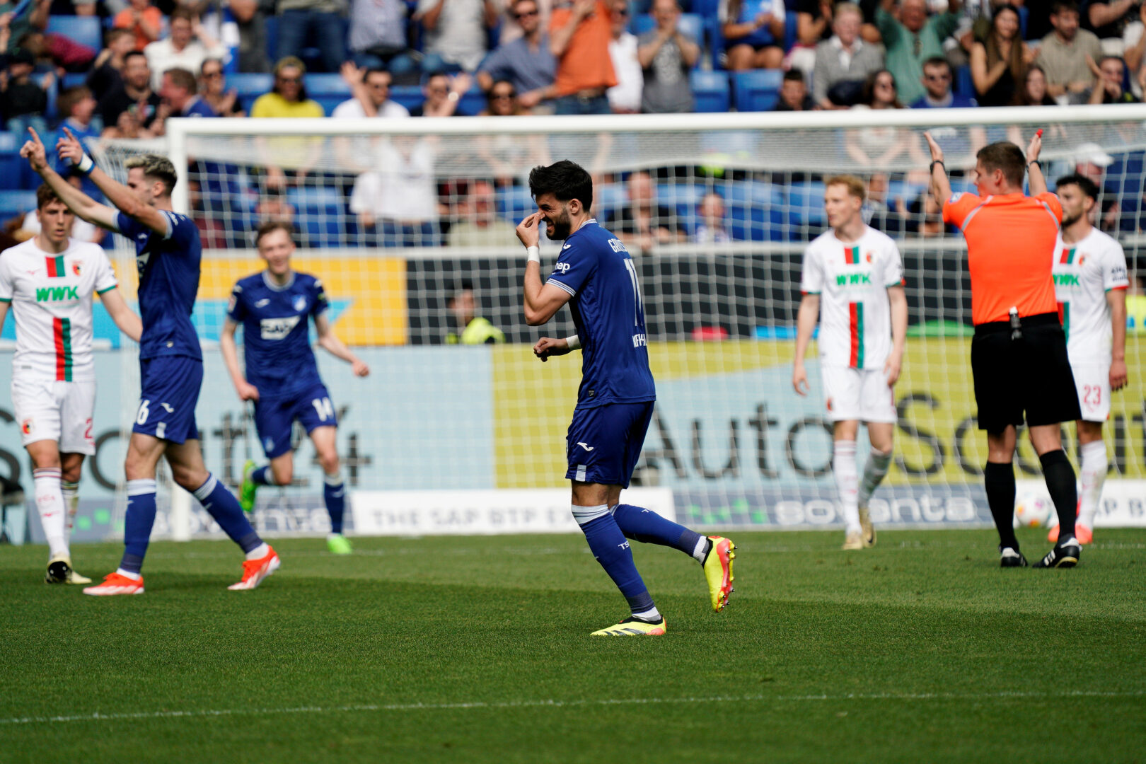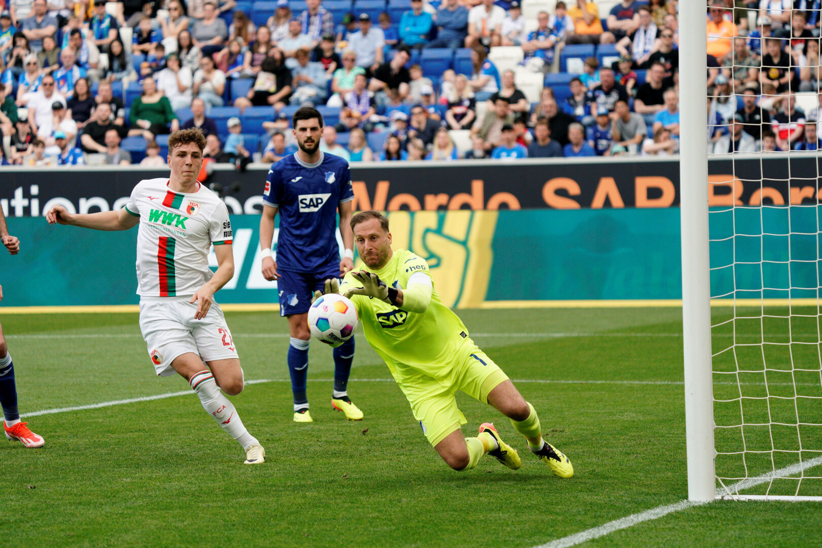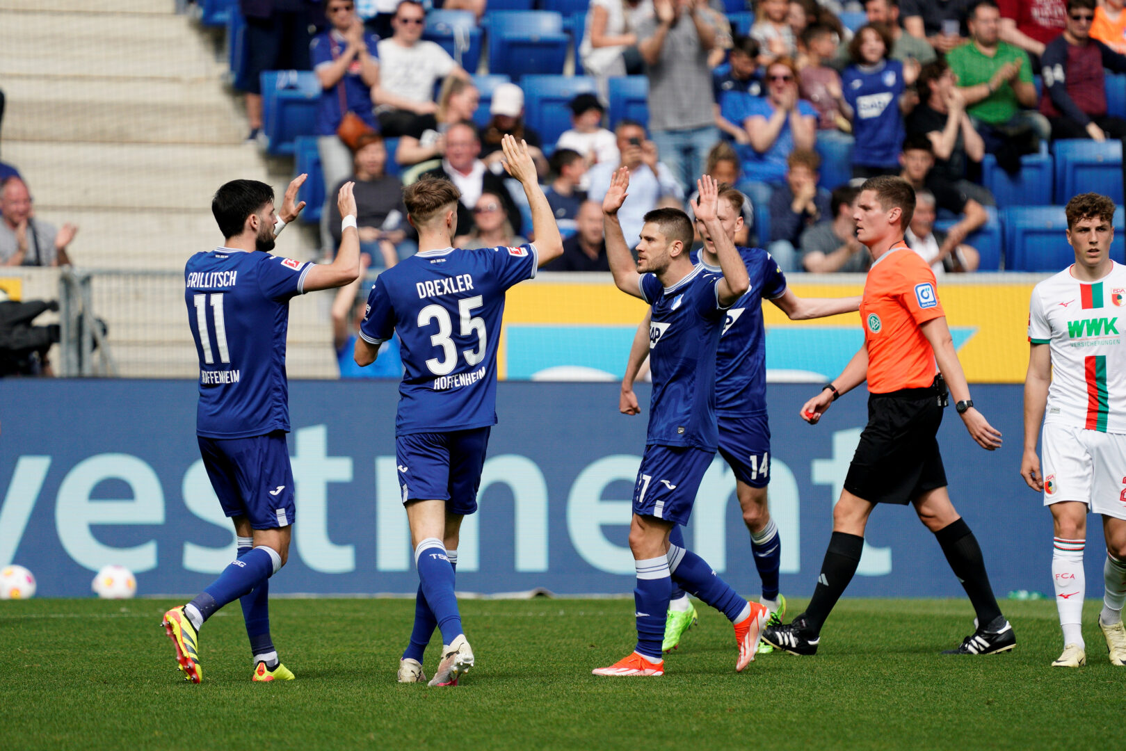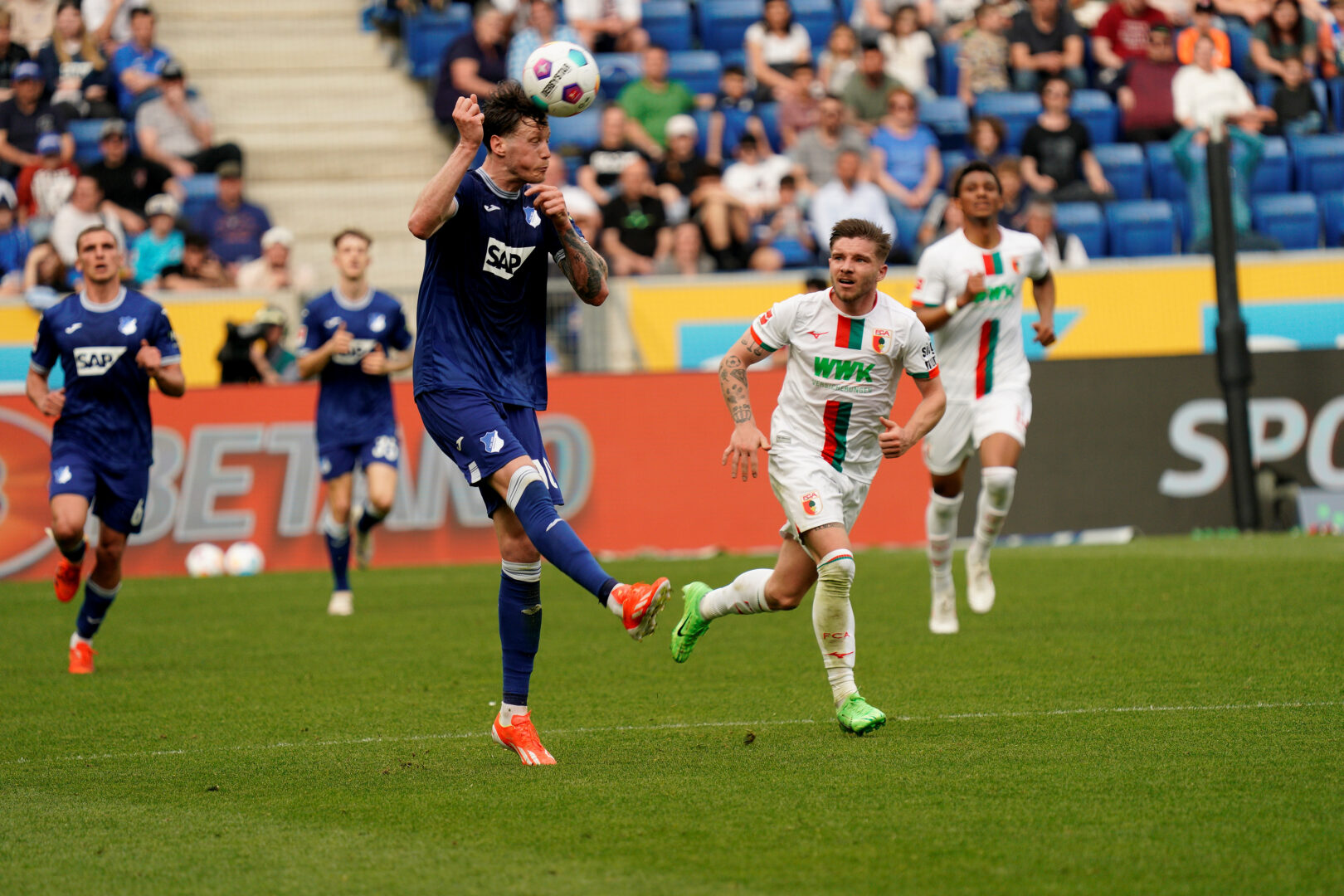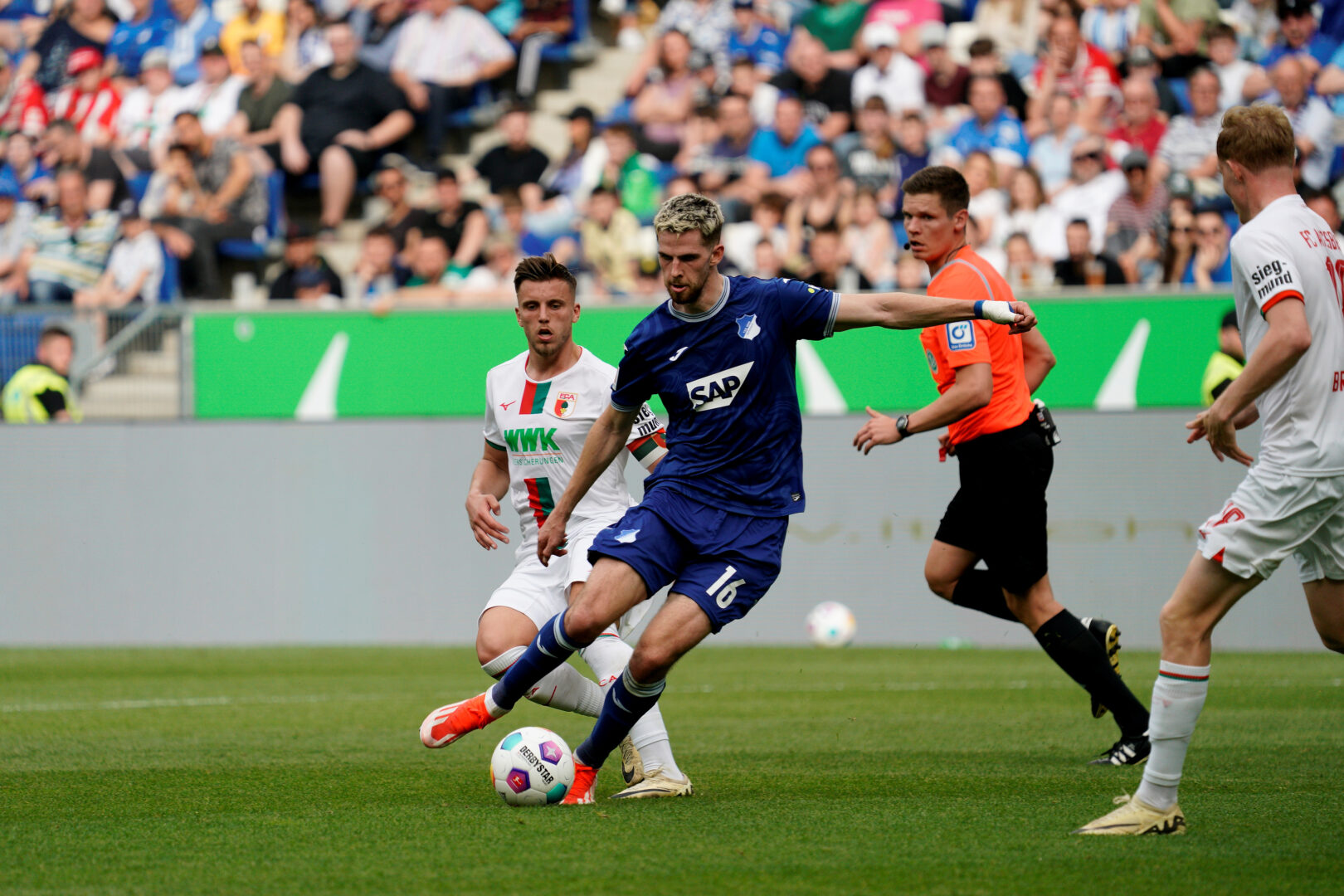 Die TSG ging von Beginn an hohes Tempo und übernahm die Spielkontrolle. Die erste Chance bot sich Anton Stach, der per Volleyschuss nur knapp das Augsburger Tor verfehlte (10.). Sieben Minuten später gab es erstmals Torjubel im stimmungsvollen weiten Rund der PreZero-Arena. Nach einem herrlichen Spielzug über Kramaric und Pavel Kaderabek, der sein 250. Pflichtspiel im blau-weißen Dress absolvierte, musste Wout Weghorst aus kurzer Distanz nur noch ins leere Tor zur 1:0-Führung einschieben (17.). Für den niederländischen Nationalspieler, der bereits beim 1:1 im Hinspiel traf, war es bereits der sechs Bundesligatreffer gegen die Fuggerstädter.