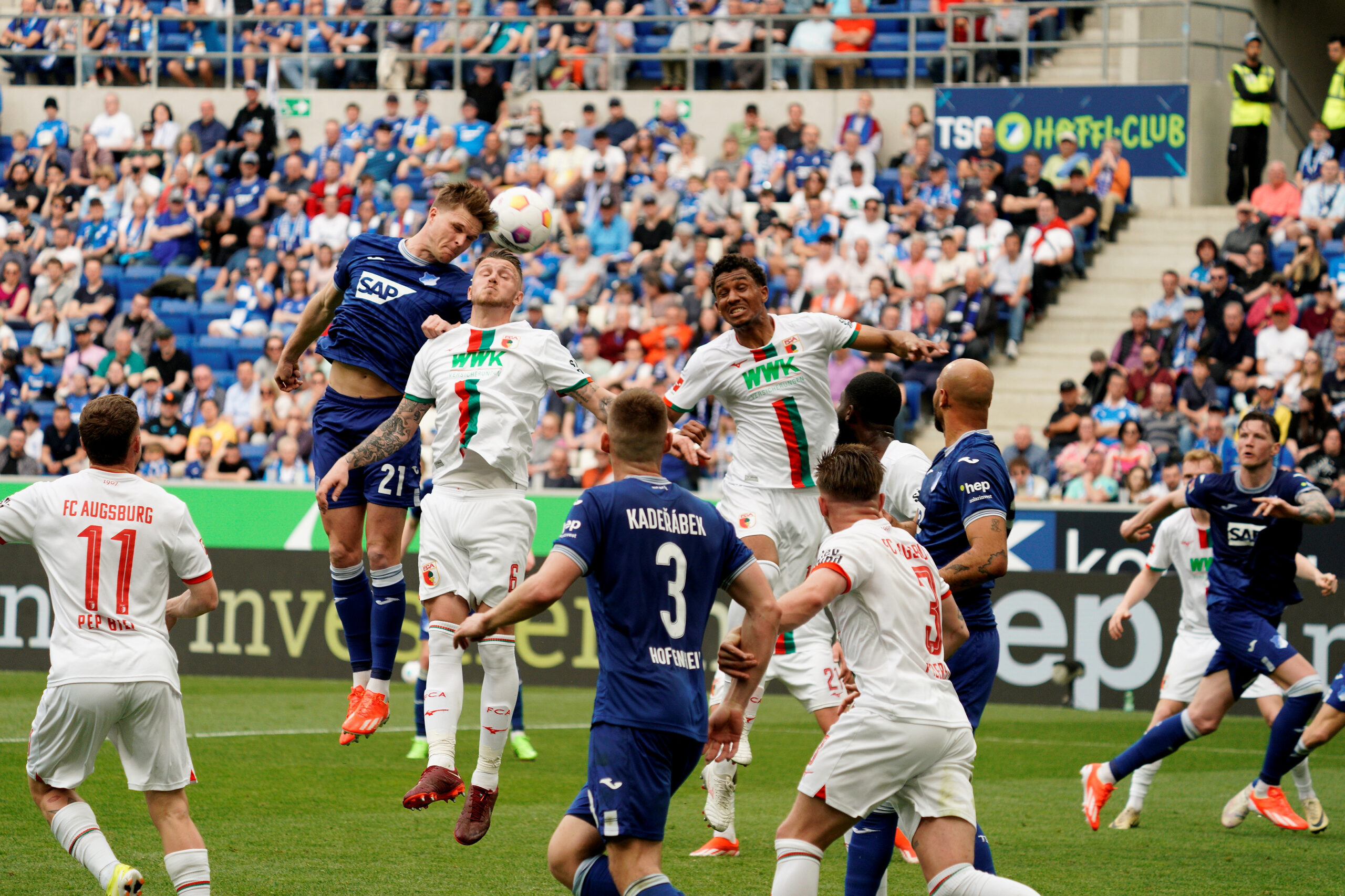 Die TSG ging von Beginn an hohes Tempo und übernahm die Spielkontrolle. Die erste Chance bot sich Anton Stach, der per Volleyschuss nur knapp das Augsburger Tor verfehlte (10.). Sieben Minuten später gab es erstmals Torjubel im stimmungsvollen weiten Rund der PreZero-Arena. Nach einem herrlichen Spielzug über Kramaric und Pavel Kaderabek, der sein 250. Pflichtspiel im blau-weißen Dress absolvierte, musste Wout Weghorst aus kurzer Distanz nur noch ins leere Tor zur 1:0-Führung einschieben (17.). Für den niederländischen Nationalspieler, der bereits beim 1:1 im Hinspiel traf, war es bereits der sechs Bundesligatreffer gegen die Fuggerstädter.