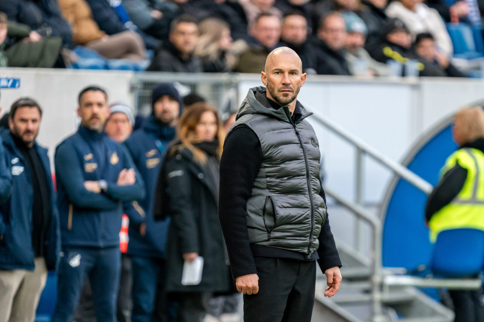 Enttäuschter Blick bei TSG-Coach Ilzer nach dem Unentschieden gegen Wolfsburg