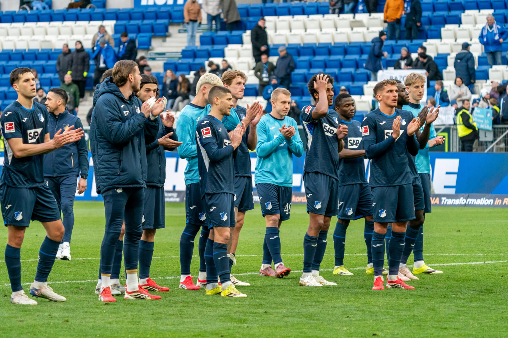 Die TSG-Profis nach dem Abpfiff beim Gang in die Südkurve