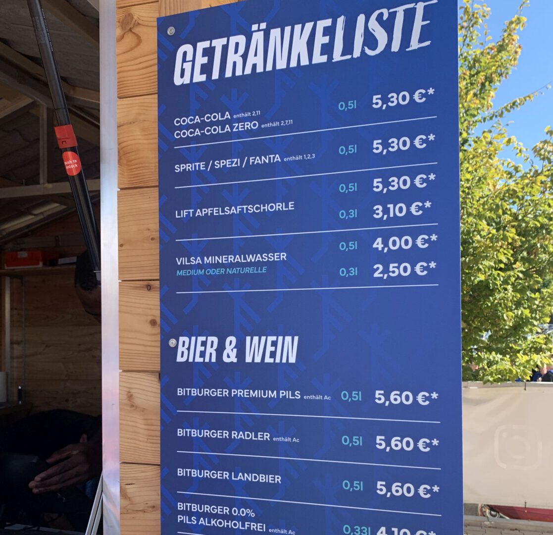 Allgemein wurden die Verköstigungspreise vom Catering in der PreZero Arena zur neuen Bundesligasaison erhöht. Die Preise in der Fankneipe in der Südkurve und auf dem Dorfplatz sind identisch. Folglich mussten auch die Getränkepreise beim Fanhaus, das direkt an den Dorfplatz angrenzt und von der TSG eigenständig betrieben wird, angepasst werden. Dauerbesucher Werner S. aus Sinsheim bemängelt dies: „Ich bin von der Preiserhöhung nicht begeistert. Die Weinschorle kostet jetzt plötzlich 1,50 Euro mehr als vorher. Das ist schon eine stolze Erhöhung.“