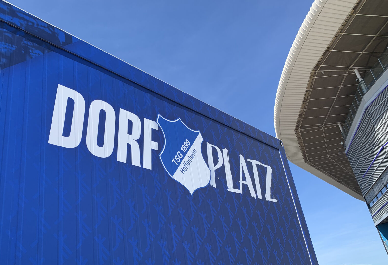 Der TSG-Dorfplatz soll als fester Anlaufpunkt auch über die Spieltage hinaus vielseitig genutzt werden. Bei der feierlichen Einweihung hatte der ehemalige Stadionsprecher Mike Diehl zu Beginn die beim Bau beteiligen Firmen und Personen vorgestellt. TSG-Präsident Jörg Albrecht, der den Fassanstich seinem Vize Christoph Henssler überließ, hob hervor, „dass er überzeugt sei, dass das Hüttendorf voll einschlägt und eine Begegnungsstätte wird, die das Gemeinschaftsgefühl stärkt“. Schon im Vorfeld hatte der Vorsitzende der Geschäftsführung Markus Schütz darauf hingewiesen, “dass der neue Treffpunkt zukünftig weit mehr als ein Ort zum Verweilen vor den Heimspielen unserer Mannschaft sei“.