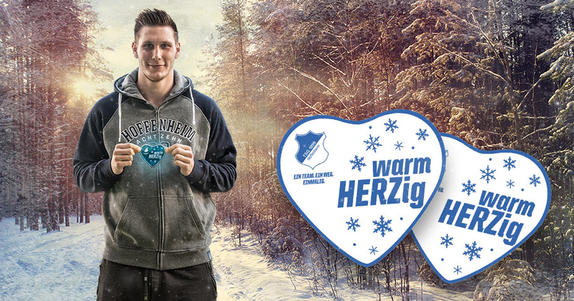 Jeder Besucher der WIRSOL Rhein-Neckar-Arena hat am letzten Mittwoch vor Weihnachten die Chance, ein Herz für Kinder in Not zu zeigen. Gegen einen beliebigen Betrag ab fünf Euro erhalten alle Spender als Dankeschön ein kleines Wärmekissen mit dem „warmHERZig“-Aktionslogo in limitierter Auflage. Gespendet werden kann am Spieltag im achtzehn99-FANSHOP, auf der Promenade des Stadions oder bei gekennzeichneten Spendensammlern im Umlauf.